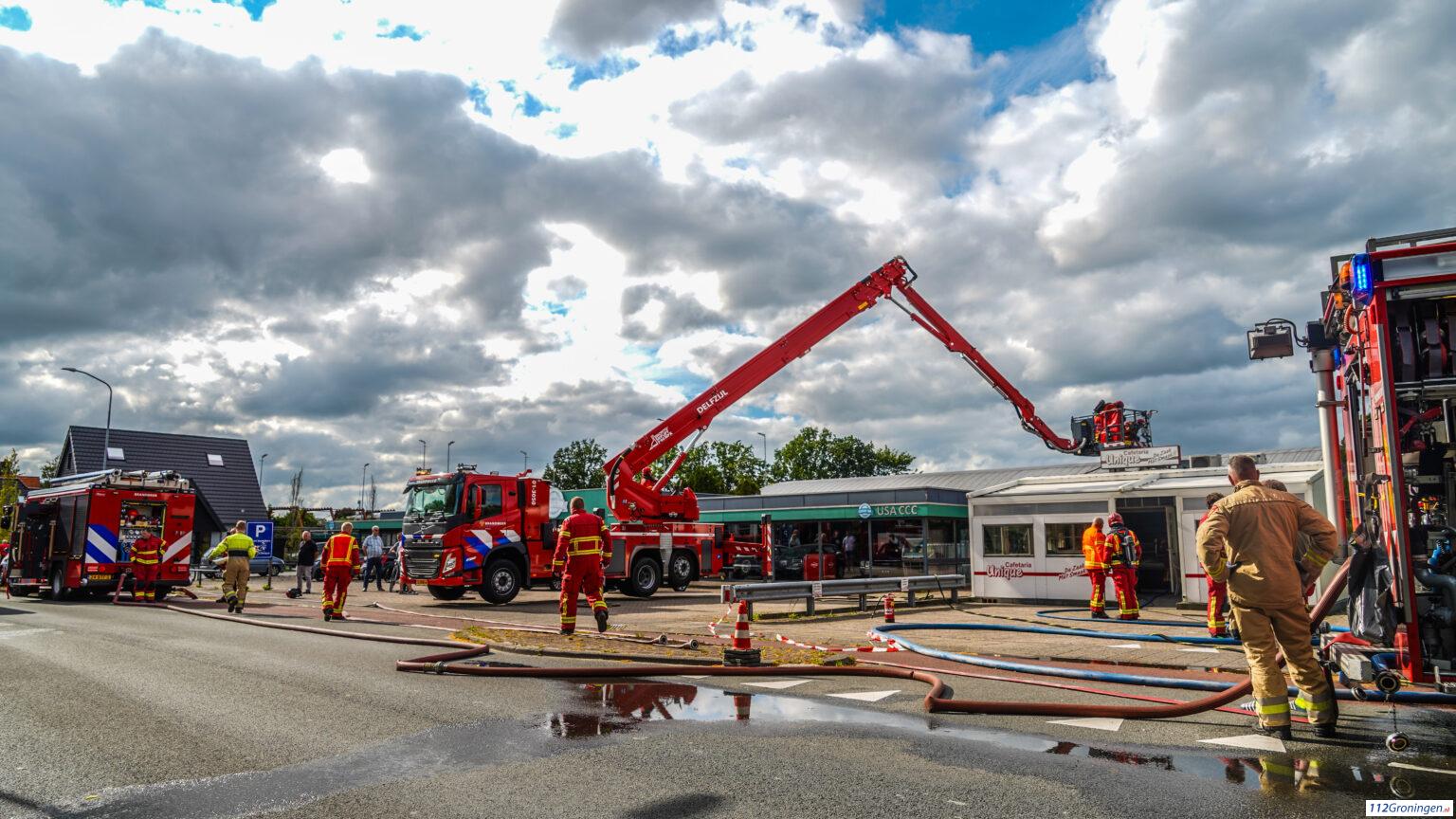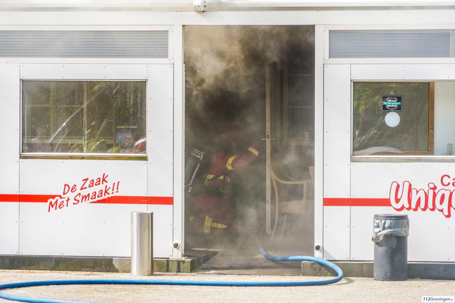De brand was na een uur onder de controle, maar de brandweer voert nog wel wat sloopwerkzaamheden uit aan het plafond en de afzuiginstallatie om de laatste vuurhaarden grondig te blussen.