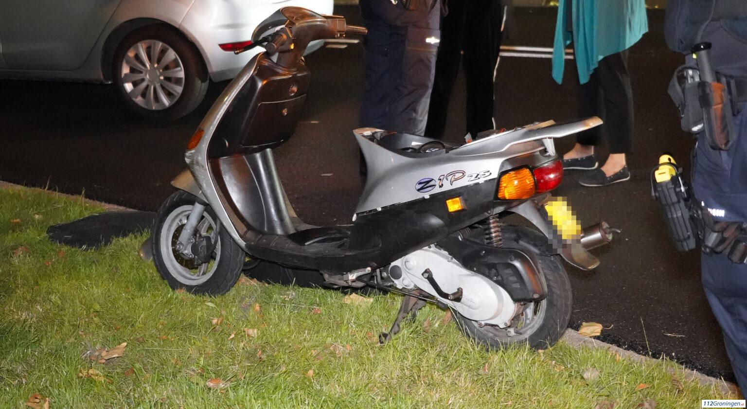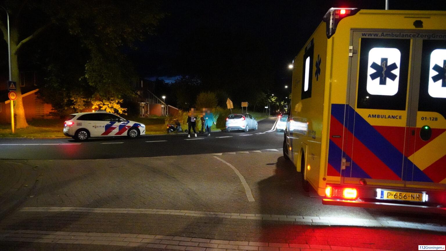 Groningen- Op de kruising Amkemaheerd/ Stoepemaheerd heeft zondag op maandagnacht een forse aanrijding plaatsgevonden tussen een auto en een scooter. Hierbij is de scooter bestuurder gewond geraakt.