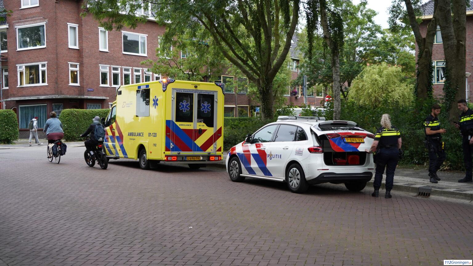 Groningen- Op de kruising Korreweg/Floresplein heeft dinsdagavond een forse aanrijding plaatsgevonden tussen een auto en een scooter. De scooter betreft een maaltijdbezorger.