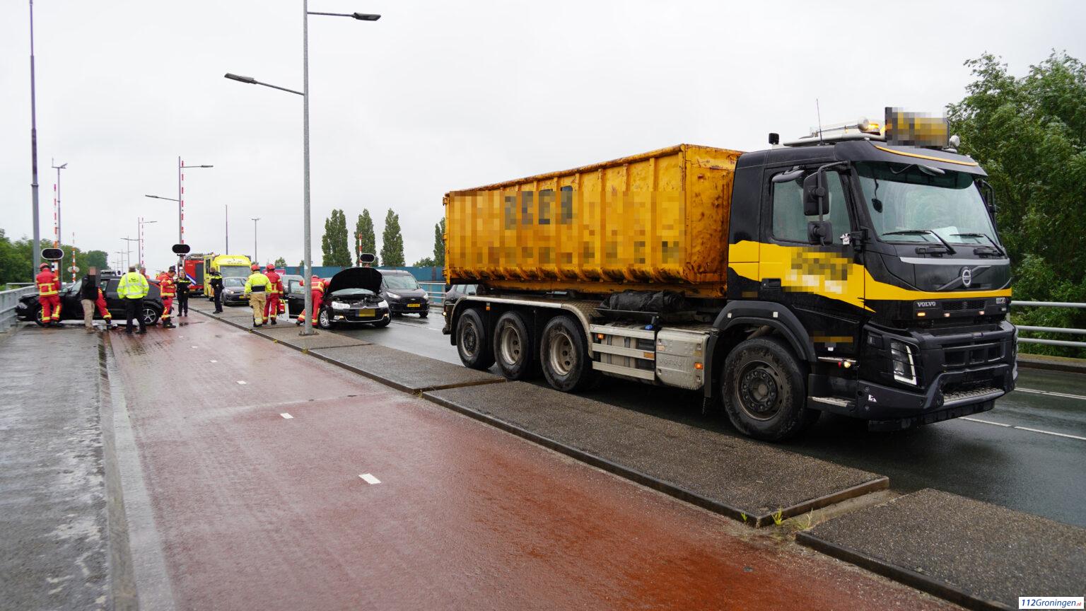 Groningen – Op de Sontbrug in Groningen heeft woensdagmiddag rond 13:15 uur een forse aanrijding plaatsgevonden tussen meerdere voertuigen waaronder een vrachtwagen. De brandweer kwam ter assistentie.