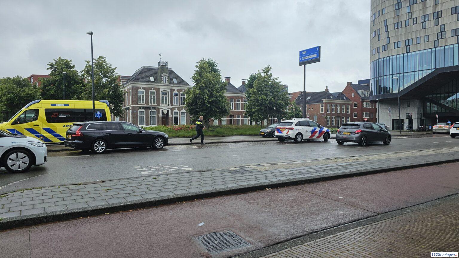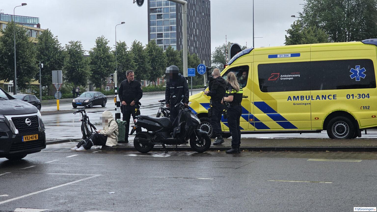 Groningen- Op de kruising Damsterdiep/Europaweg heeft woensdagmiddag een aanrijding plaatsgevonden tussen een scooter en een fietser.