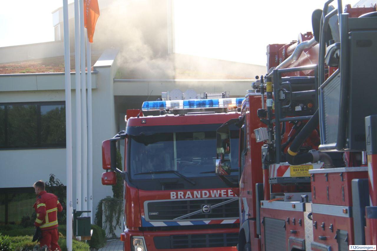 Update: Een tweede blusvoertuig en een waterwagen uit Drenthe zijn opgeroepen. Ze hebben de brand onder controle. Tijdens het opladen van accu’s is er korstsluiting ontstaan en dat leidde tot de forse rookontwikkeling.