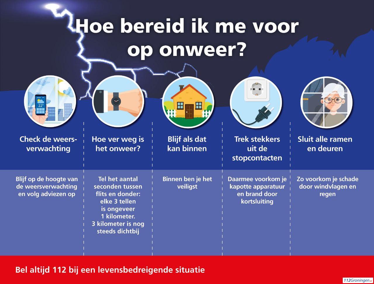 Regio – Zware onweersbuien gaan dinsdagavond na 22:00 uur van het zuidwesten naar het noordoosten over het land trekken. Het KNMI heeft daarom de weerswaarschuwing `Code Oranje` afgegeven, ook voor Groningen.
