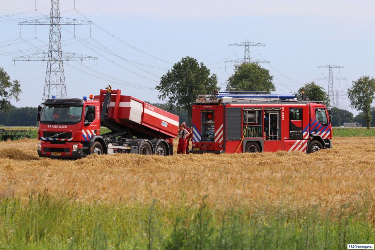 Ook Winschoten kwam ter plaatse voor assistentie met de haakarmbak water.. Dit om genoeg water te hebben op het land. De combine liep zware schade op.