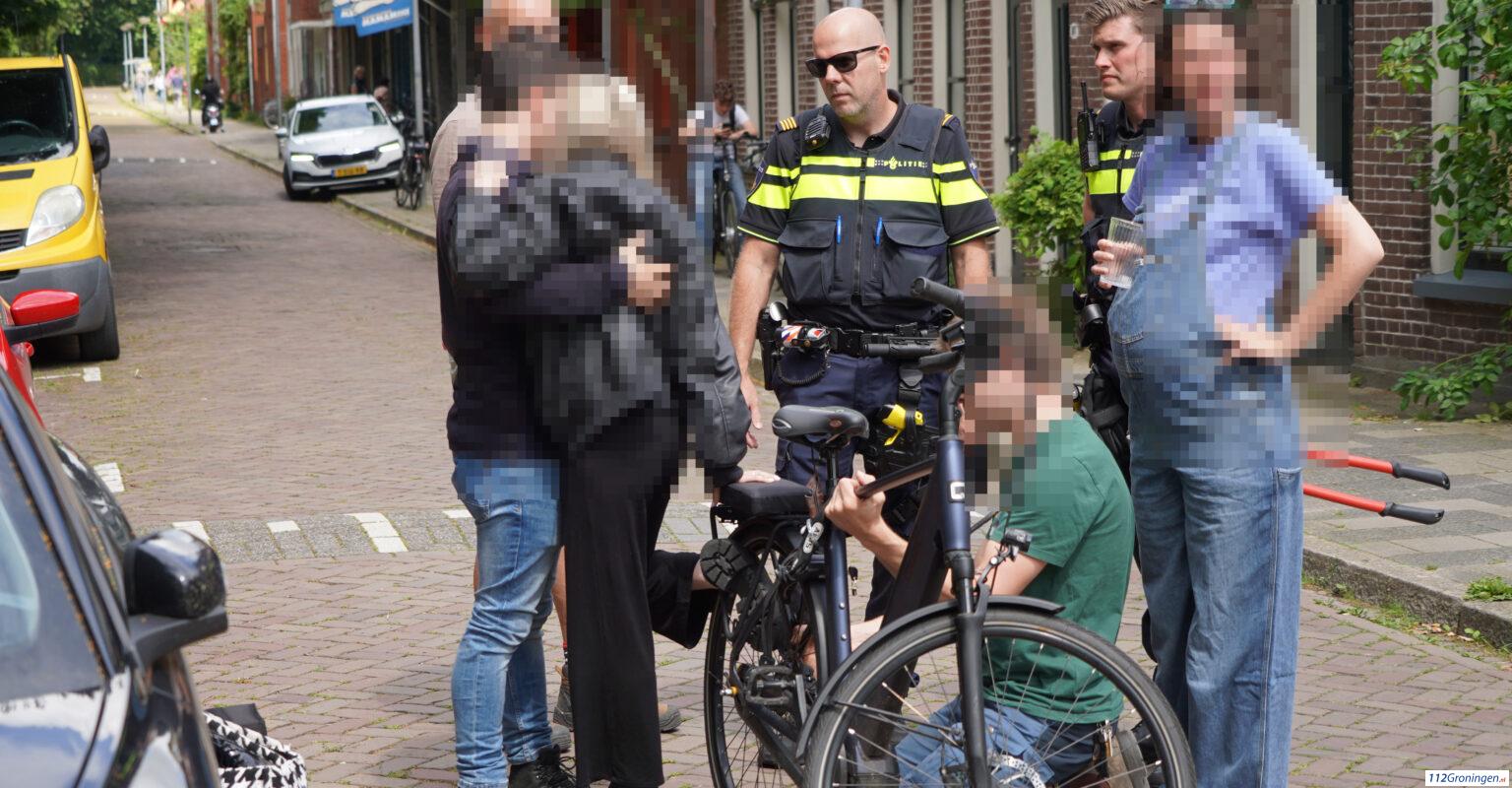 Groningen – Aan de Noorderbinnensingel heeft dinsdagmiddag een vrouw die achterop een fiets zat haar voet in het achterwiel gekregen.