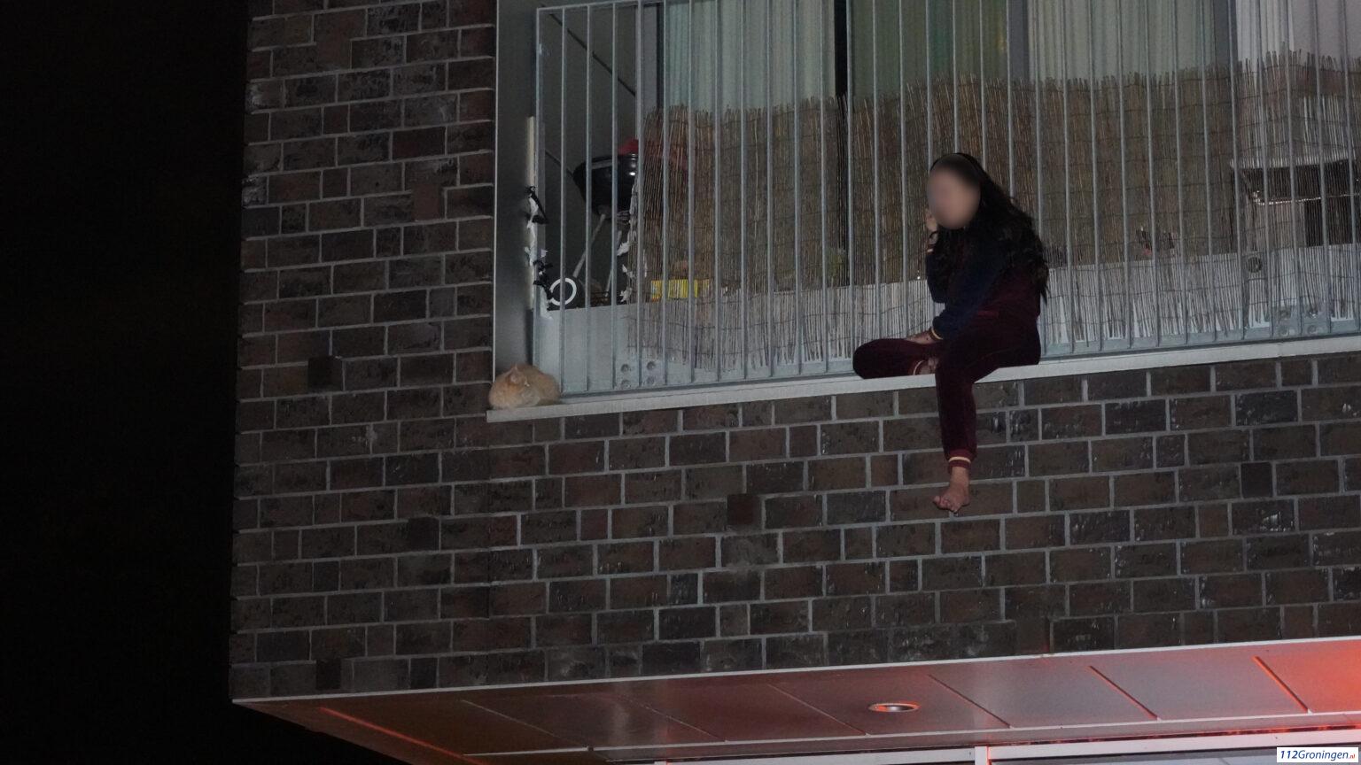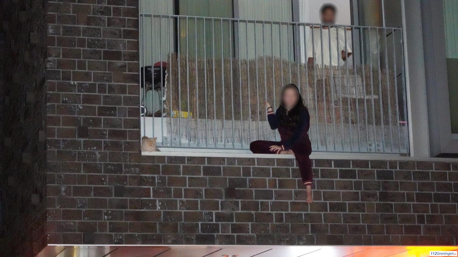 Achter een hekwerk van één van de balkons op de eerste verdieping (aan de straatkant) besloot een kat niet terug te komen naar zijn bazin. Om het dier te redden, besloot de vrouw zelf ook over de railing van haar balkon te klimmen. Haar overkwam vervolgens hetzelfde als haar huisdier: ze durfde zich niet meer te verroeren.