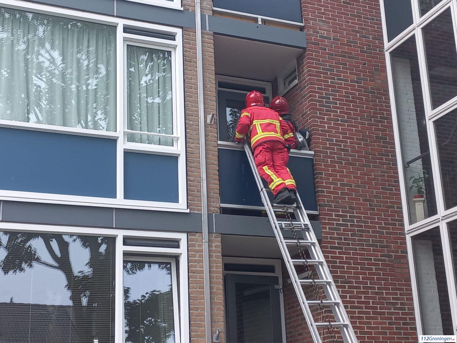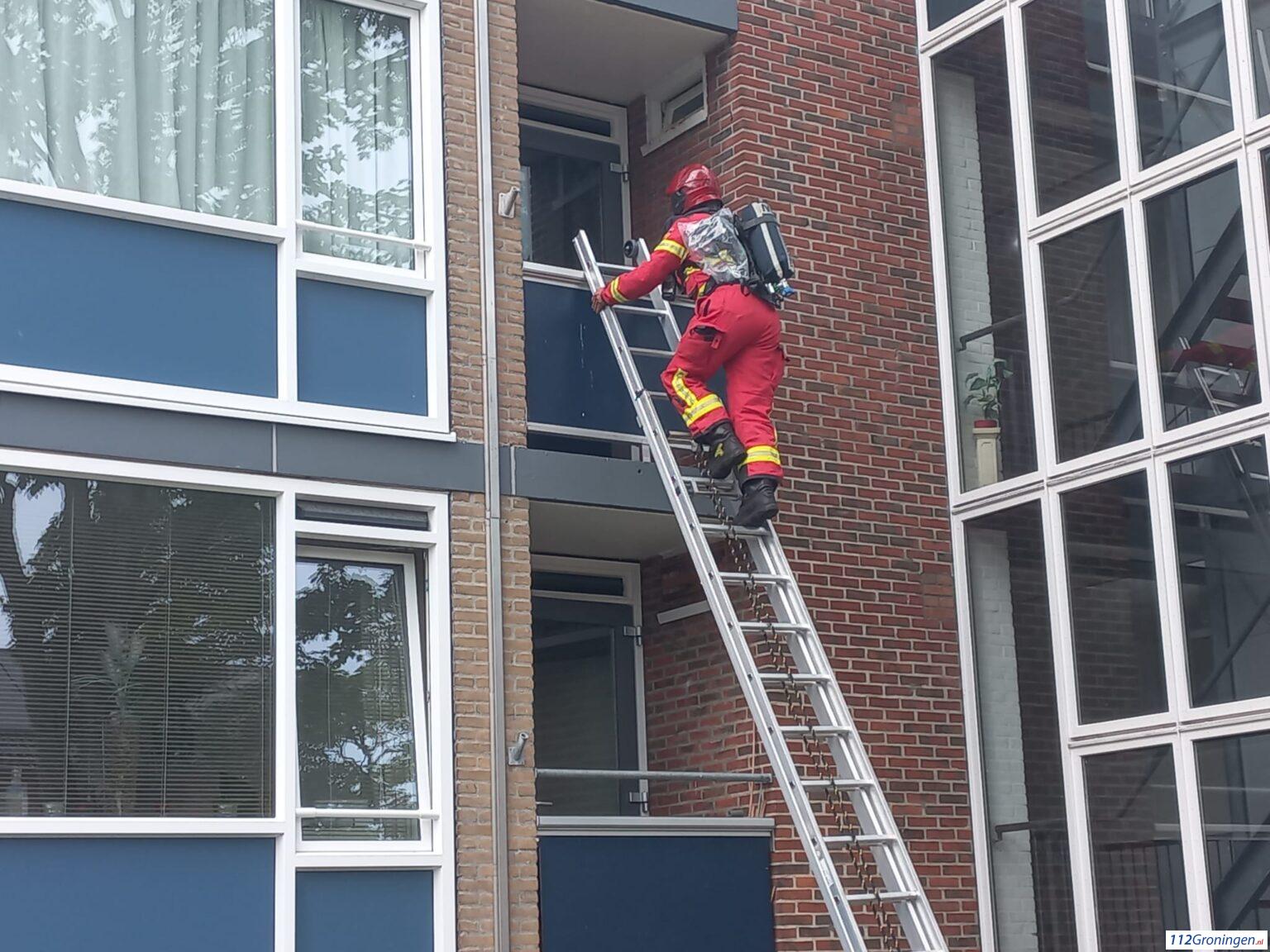 De brandweer moest via het balkon het raam inslaan om toegang te krijgen tot de woning, maar er bleek geen sprake te zijn van een echte brand.