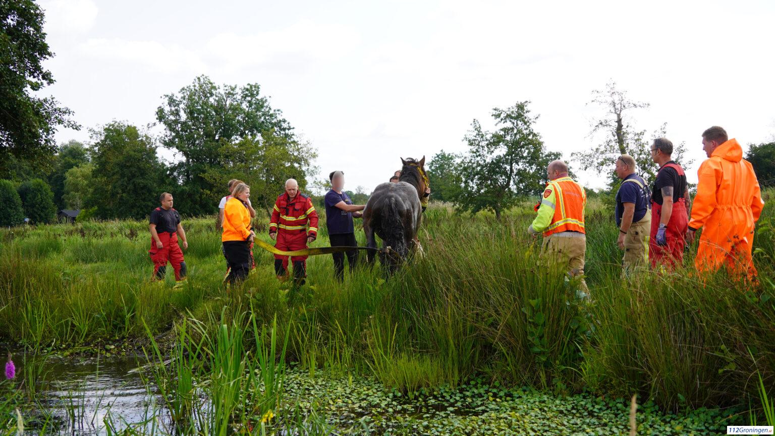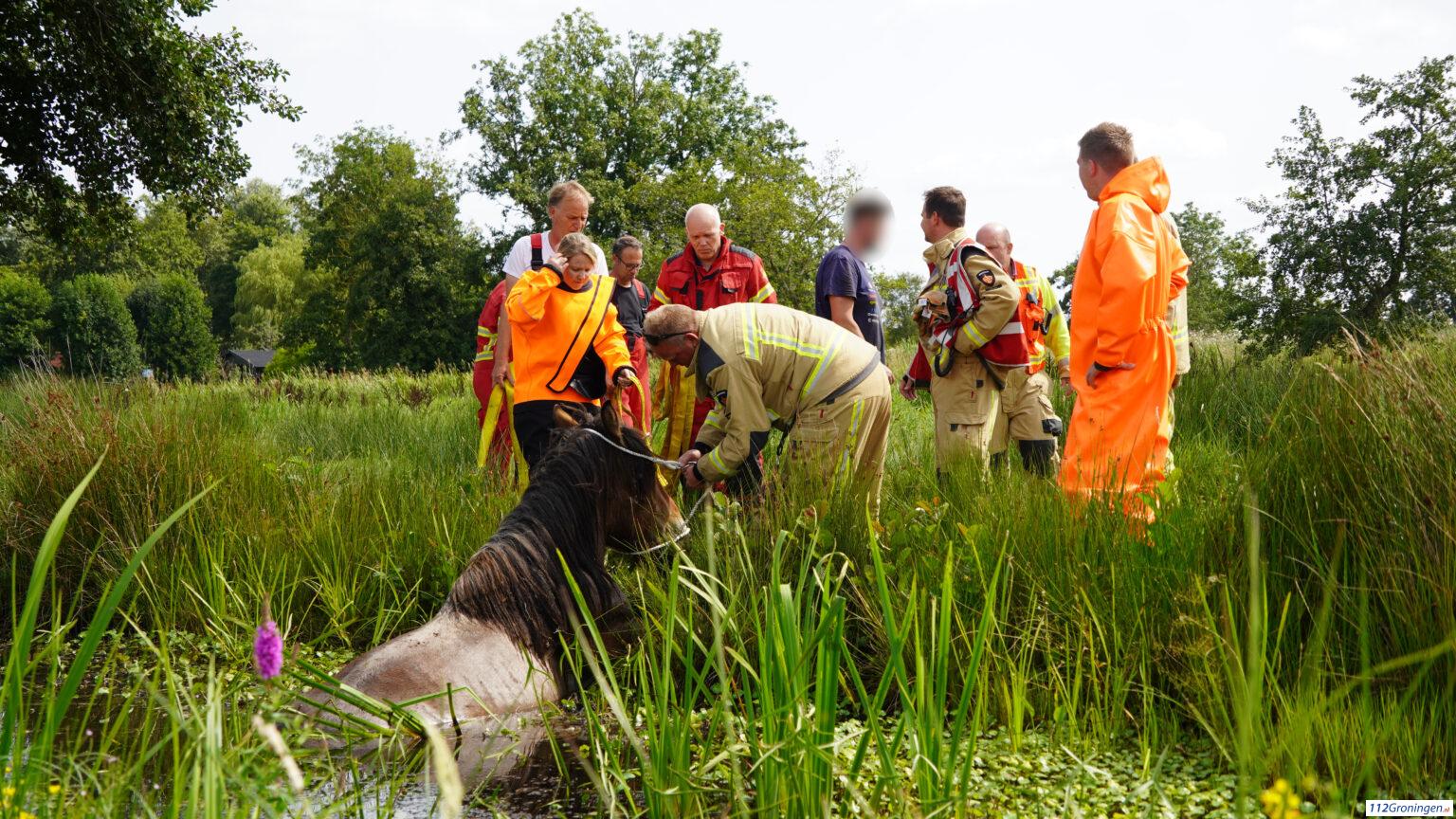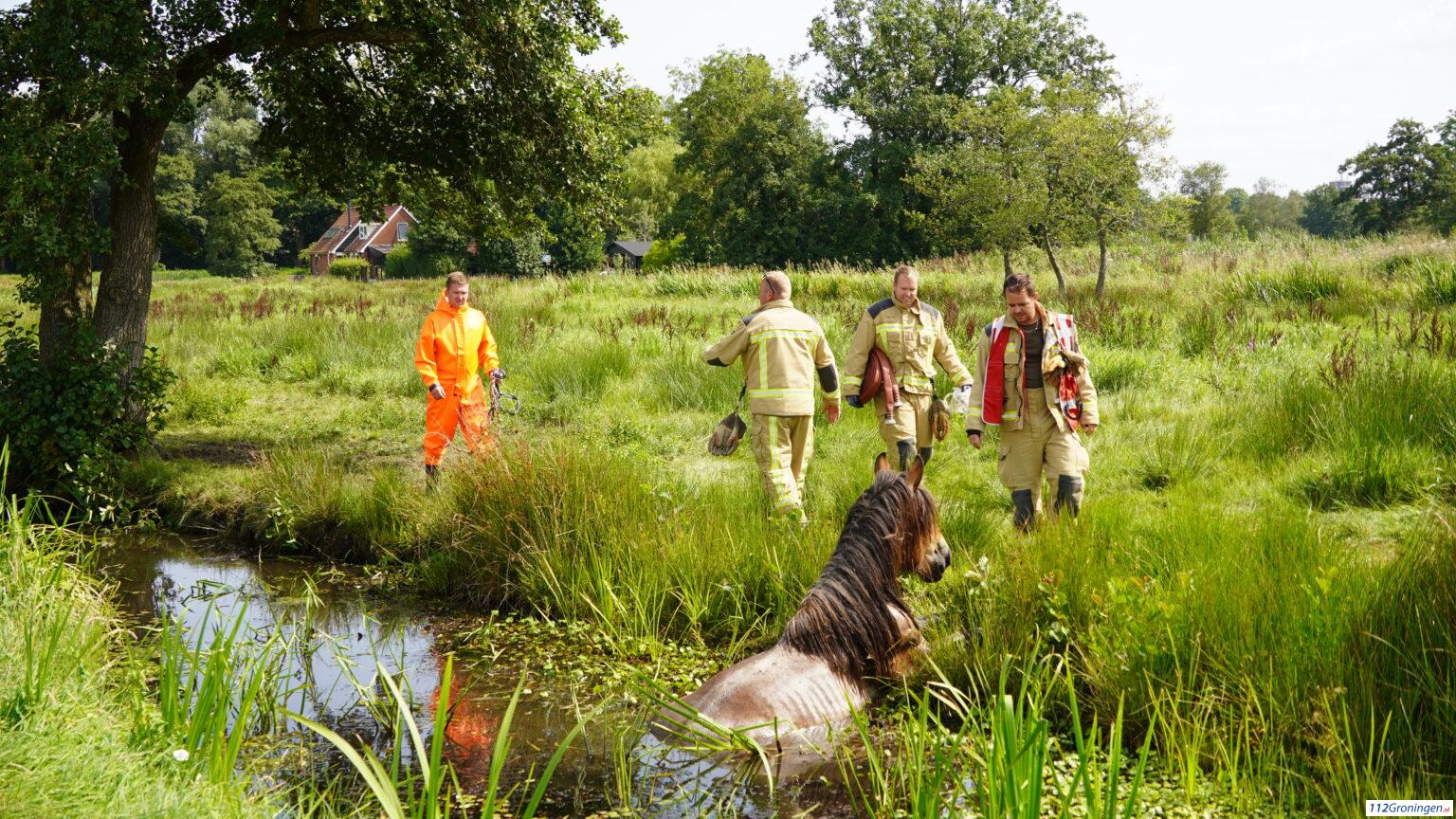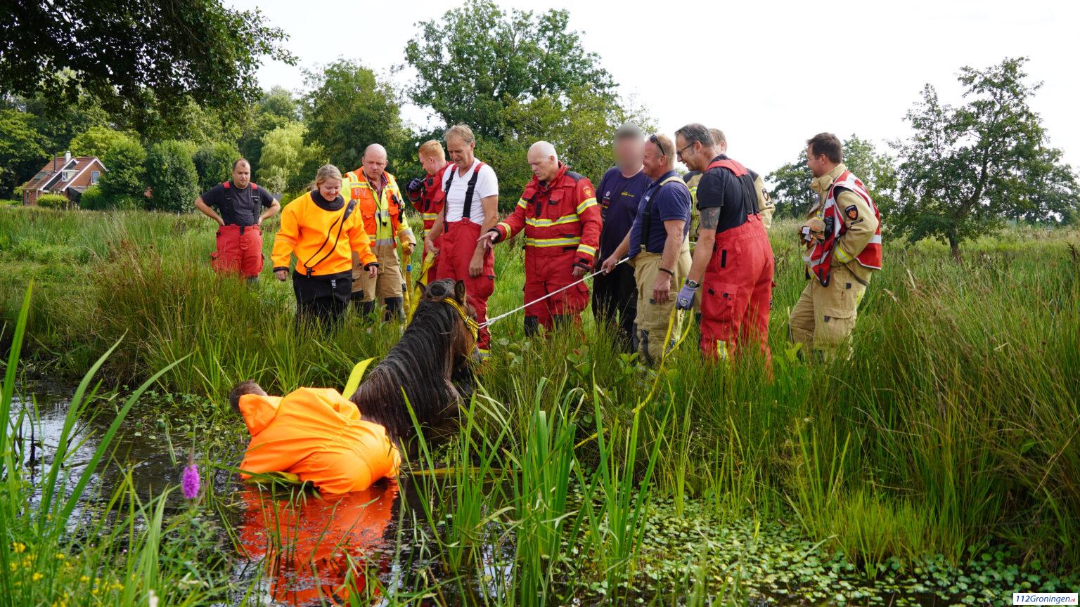 Haren – Maandag is er aan het begin van de middag een paard te water geraakt op het Molenpad nabij de Hoornsedijk in Haren.
