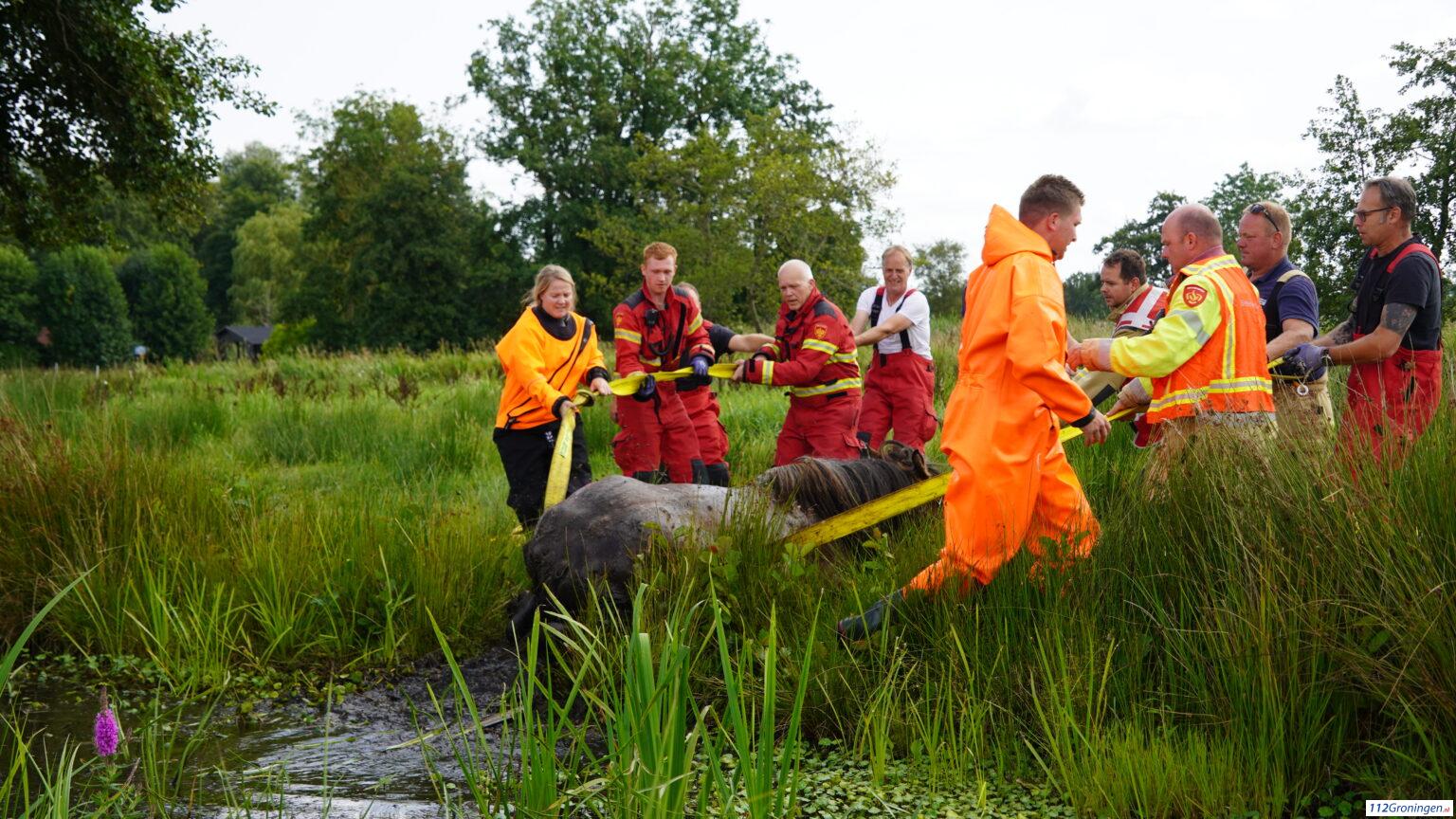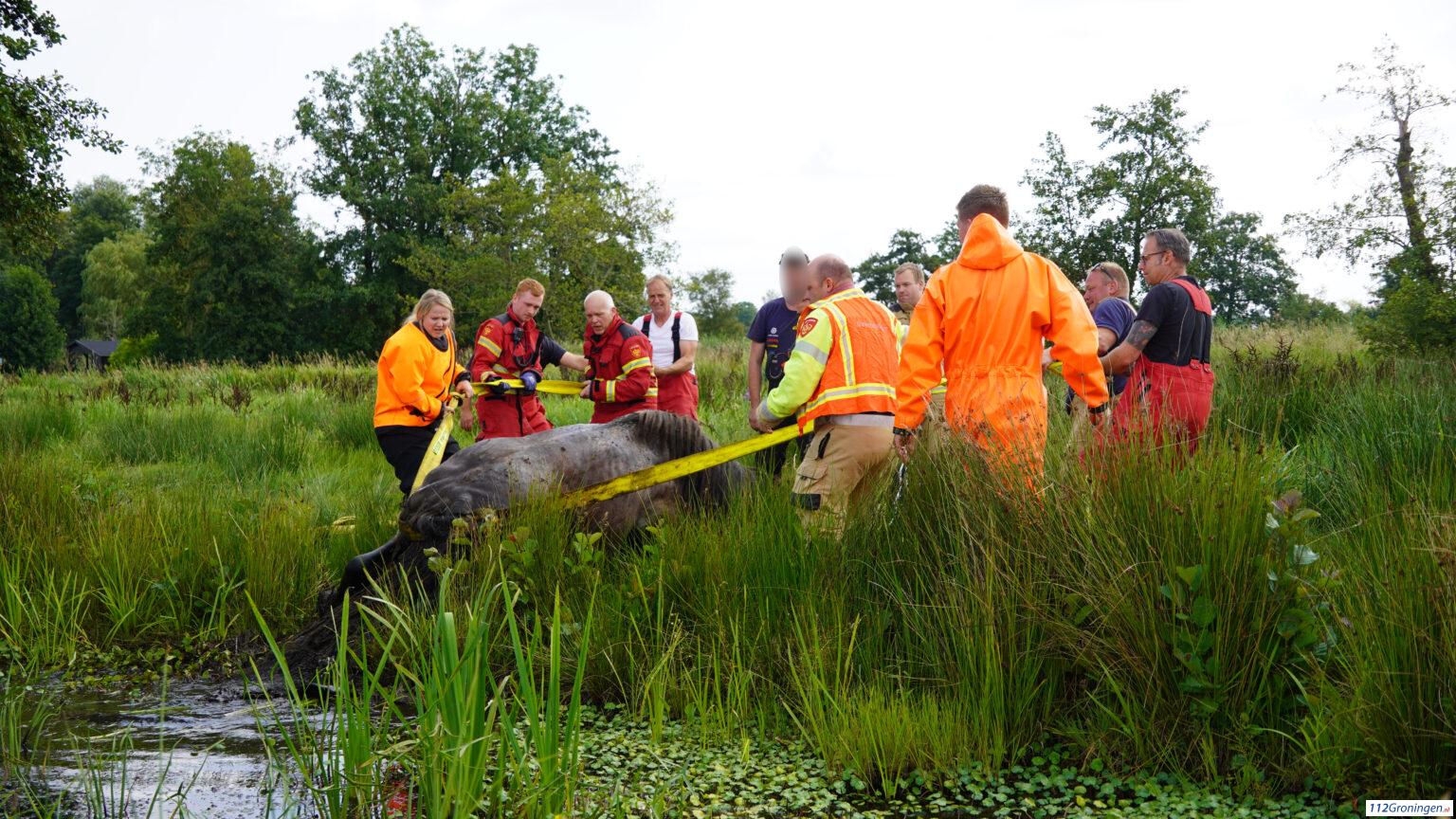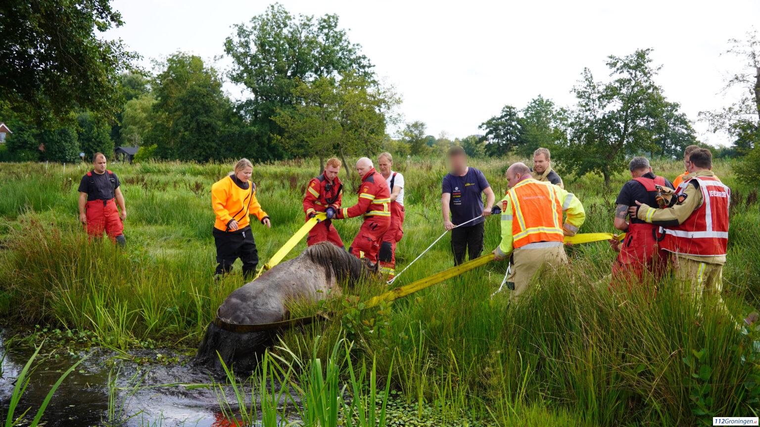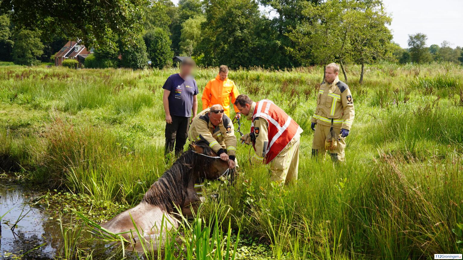 Haren – Maandag is er aan het begin van de middag een paard te water geraakt op het Molenpad nabij de Hoornsedijk in Haren.