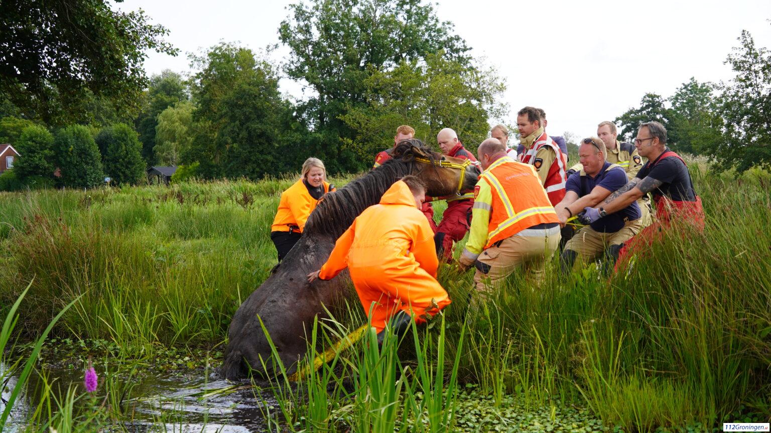 De brandweer van Haren en Eelde kreeg maandag rond 13:00 uur een melding van een dier ter water. Ter plaatse bleek het te gaan om een paard dat vast zat in een nabijgelegen sloot. De brandweer van Haren en Eelde hebben samen het paard uit de sloot getrokken.