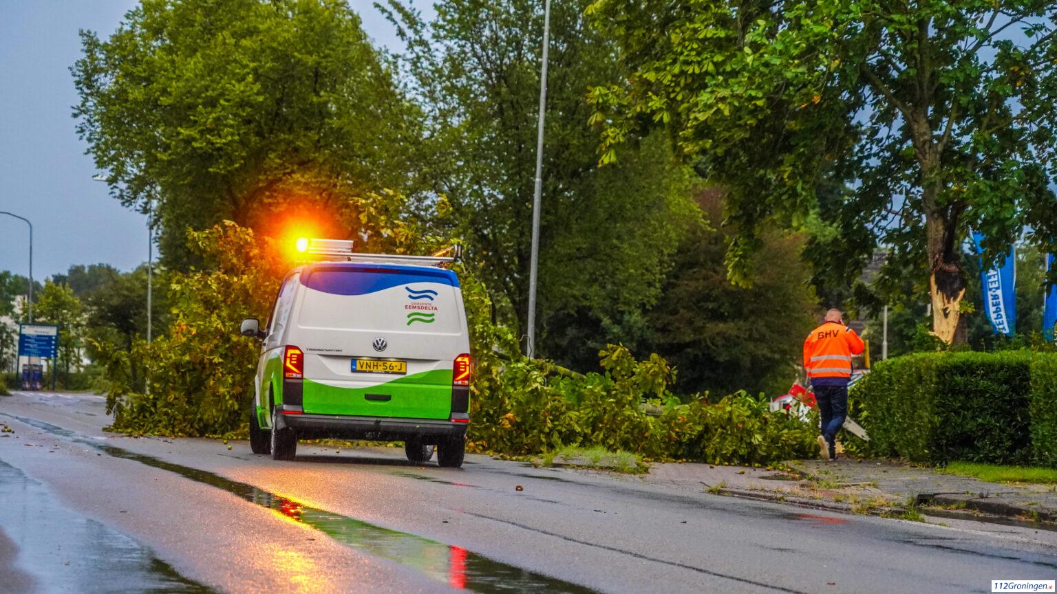 Ook in Appingedam, op de Woldweg, is een flinke tak van een boom afgebroken. De gemeente is ter plaatse om de situatie te beoordelen en de tak te verwijderen.
