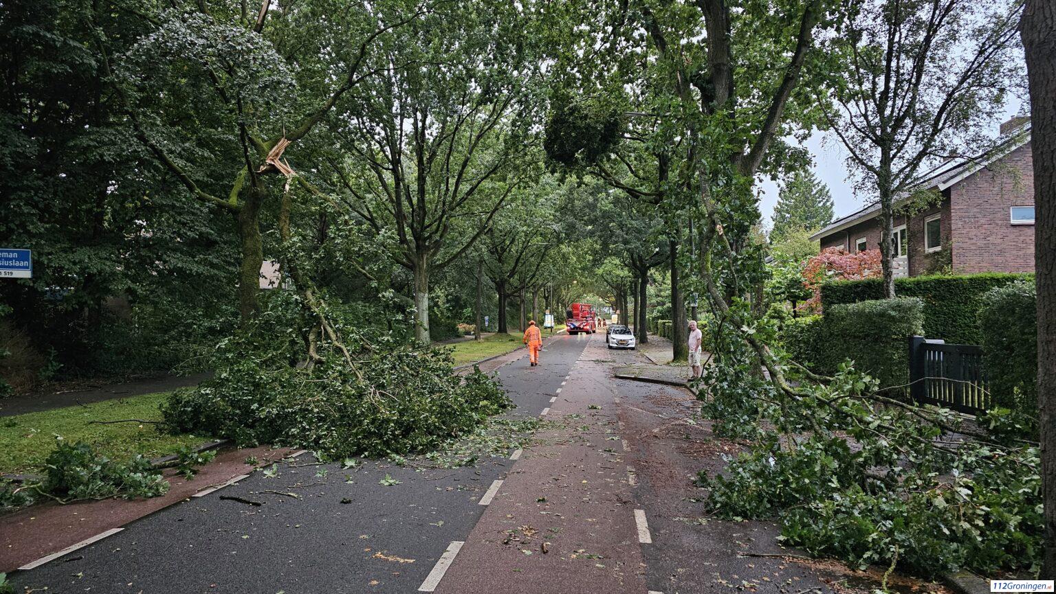 In de wijk Saaksumborg is een boom omgevallen, waardoor de weg volledig werd gestremd. Daarnaast ligt er een grote tak op de Goeman Borgesiuslaan, wat ook daar voor verkeershinder zorgt. De gemeente is bezig met het opruimen van de boom en takken om de wegen weer vrij te maken.