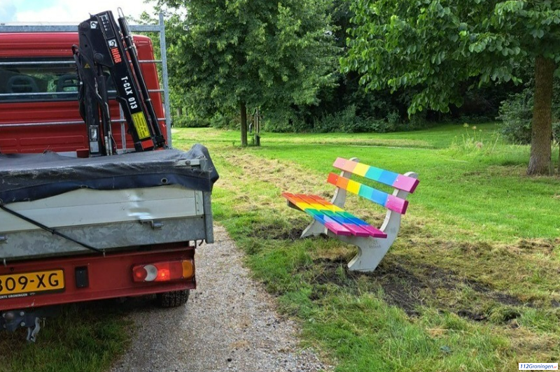 Het regenboogbankje aan de Kerklaan in Haren werd vrij snel na de plaatsing beklad. Korte tijd later werd het bankje door onbekenden uit de grond gehaald en midden op de rotonde gezet. Molema: “Van elke vernieling hebben we aangifte gedaan. Daarnaast hebben we planken van de bankjes op voorraad liggen zodat we ook snel eventuele schades kunnen herstellen. Voor het bankje in Ten Boer, in het Amaliapark, denken we na over een andere locatie waar er meer toezicht is.” Dit bankje werd eind-juli uit de grond gehaald en belandde vervolgens in een vijver.