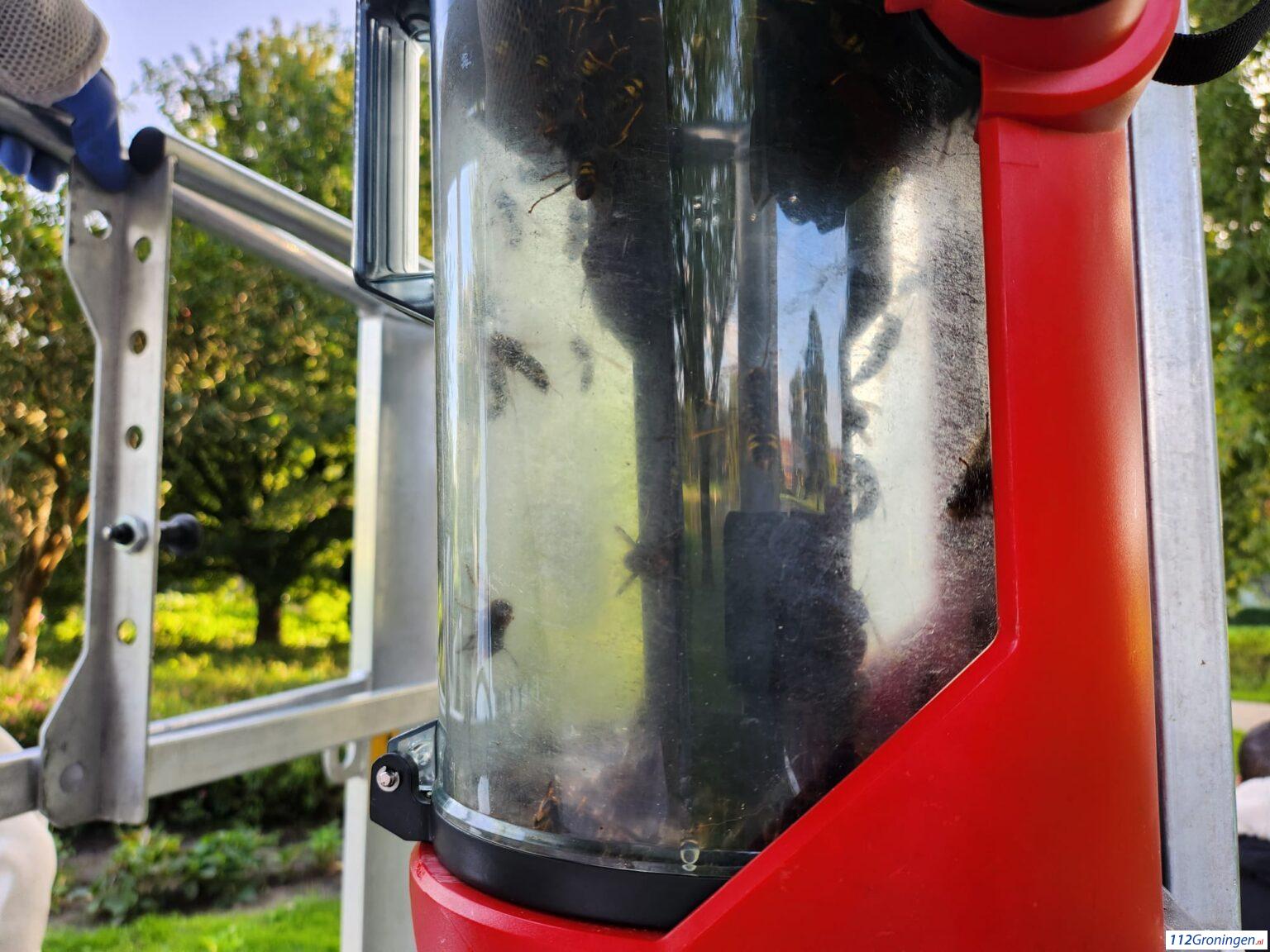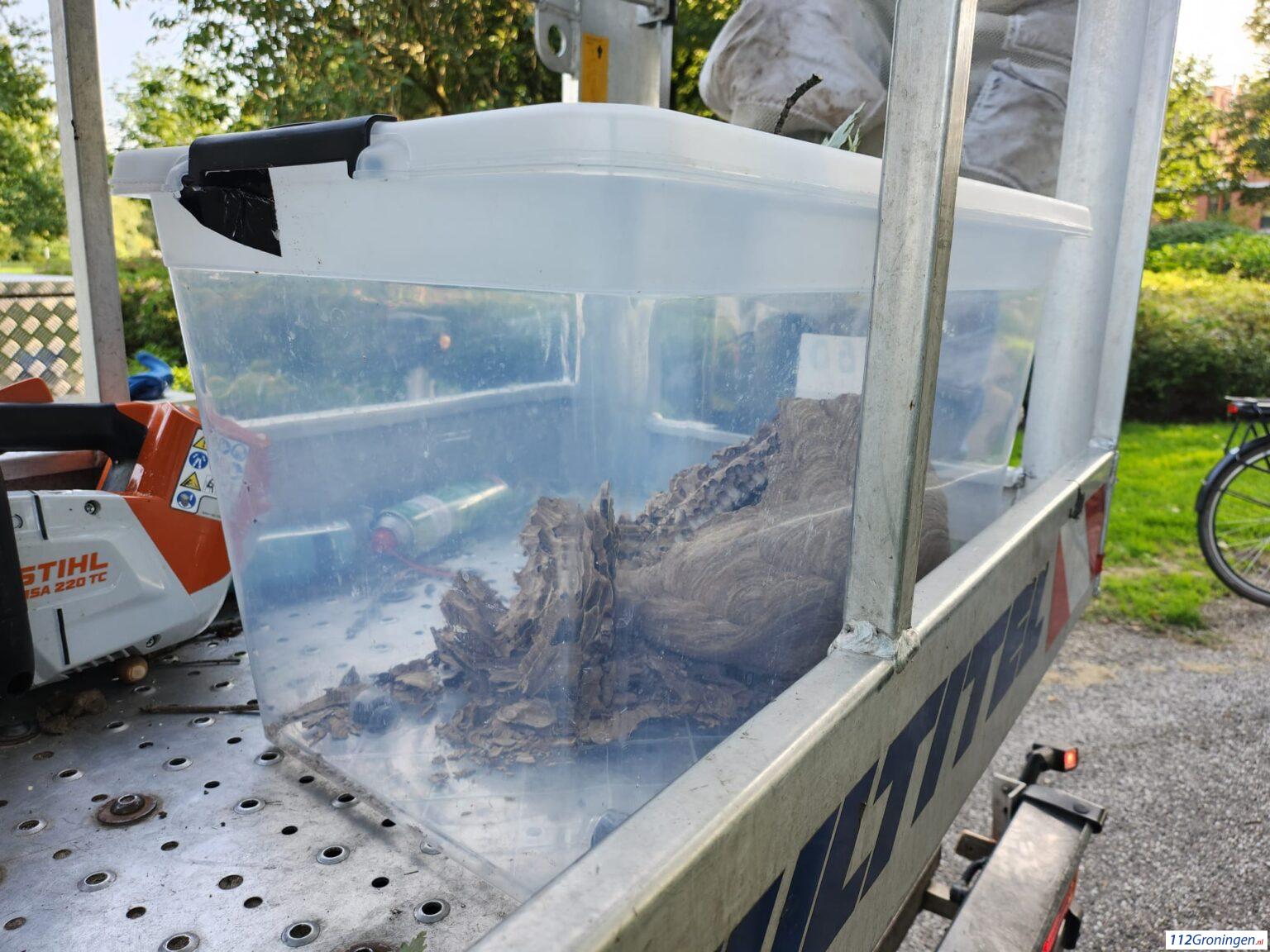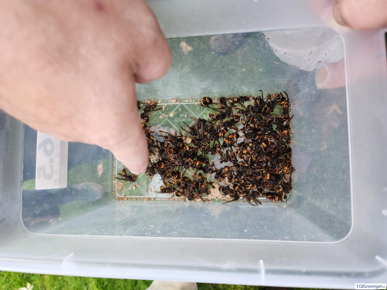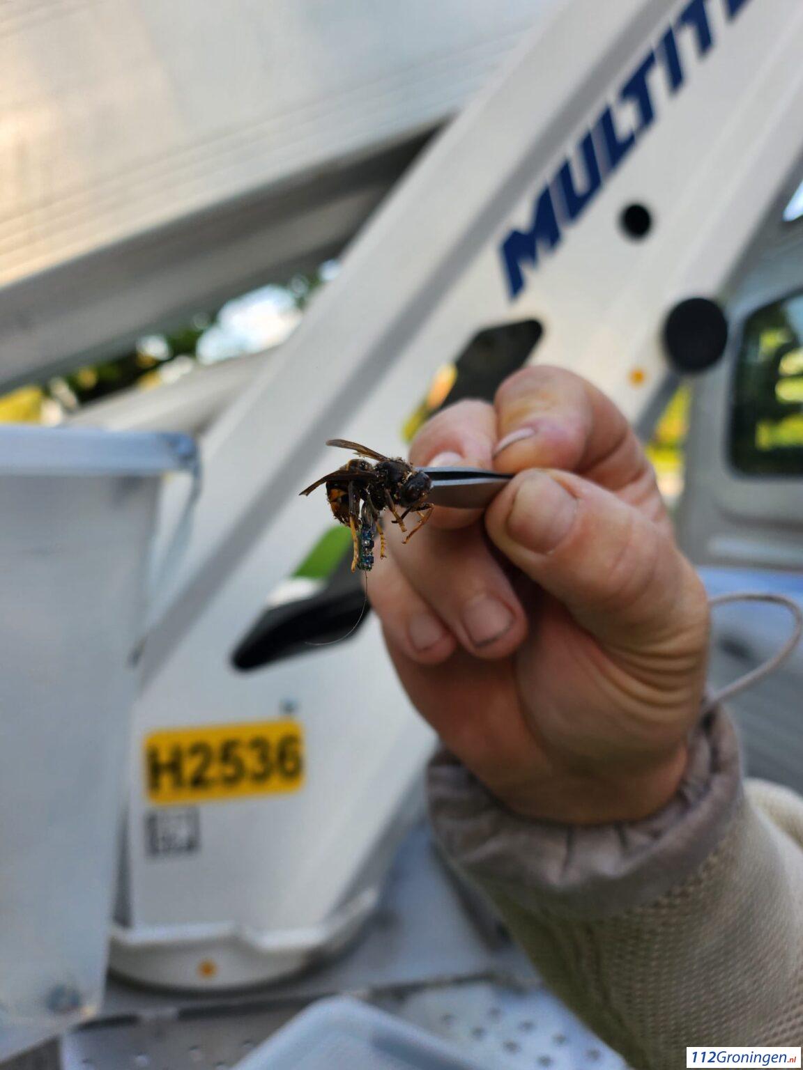 Groningen – 500 Meter van het nest vonden twee wijkbewoners een Aziatische hoornaar in hun tuin in de Oosterparkwijk in Groningen.