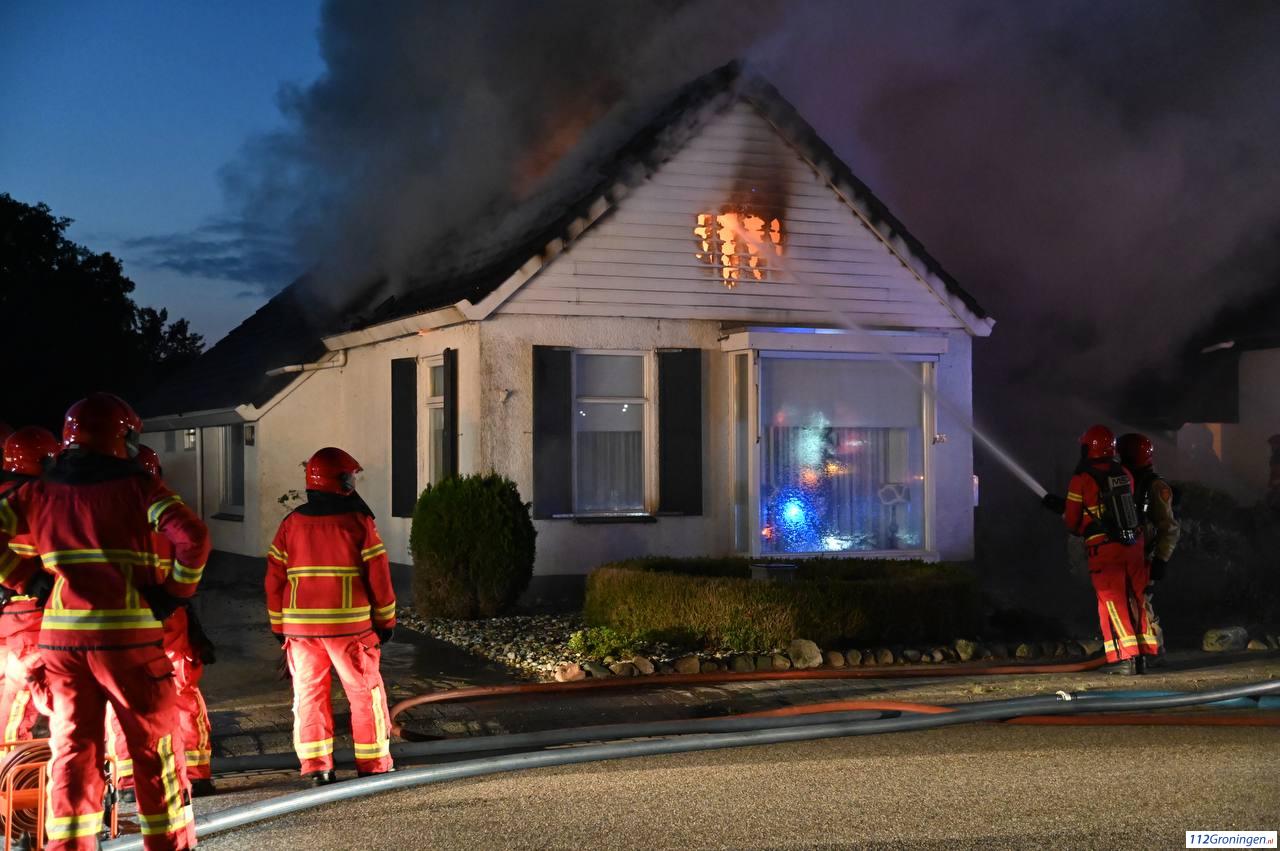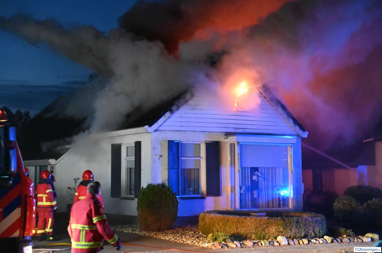 Finsterwolde – Aan de Molenstreek in Finsterwolde stond dinsdagochtend vroeg een woning in brand. De vlammen sloegen metershoog uit het dak toen de brandweer aan kwam.