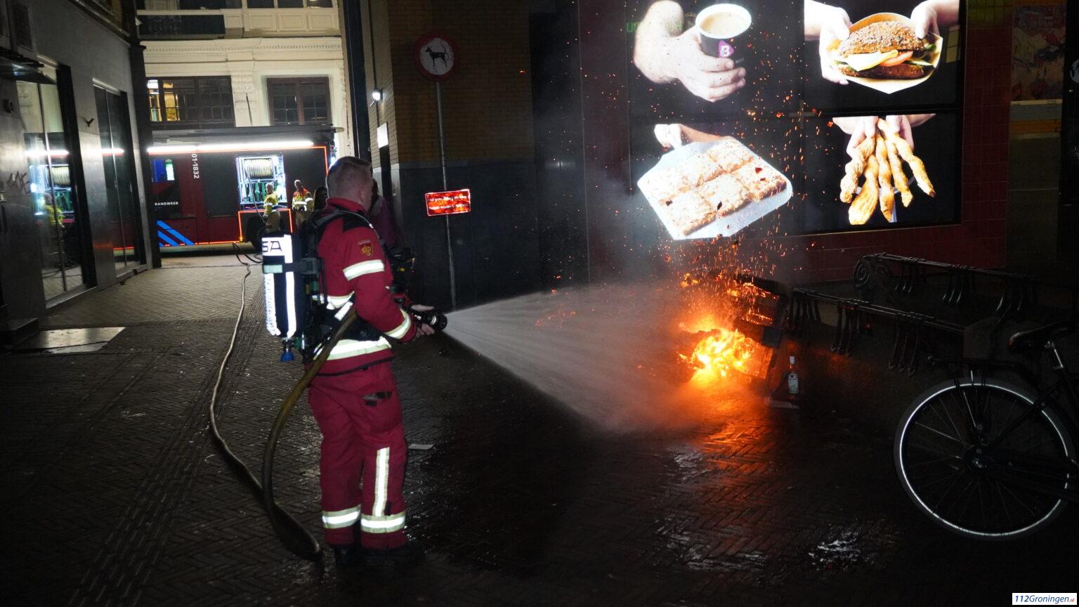 De hulpdiensten waren snel ter plaatse. De politie had de brand snel gedoofd waarna de brandweer de boel heeft nageblust. Een uur eerder was er een zelfde soort brand bij de toiletten op de Grote Markt. Over de oorzaak van de brand is niks bekend, maar lijkt aangestoken. Tips via 09008844.