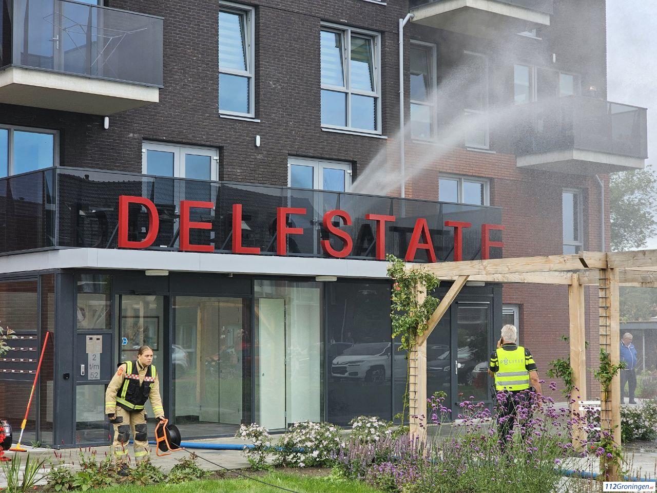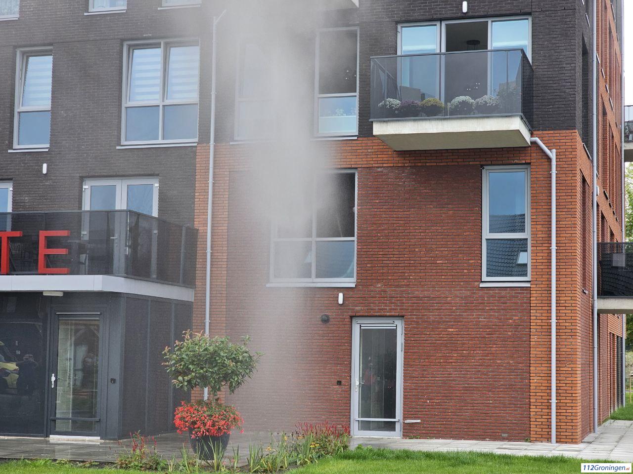 Meerdere brandweervoertuigen kwamen ter plaatse. De toedracht is nog onbekend. Er moest ook een ambulance komen voor controle van een bewoonster. De flat wordt geventileerd. Lees ook liveblog VR Groningen.