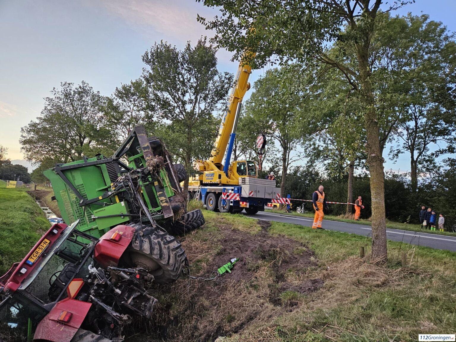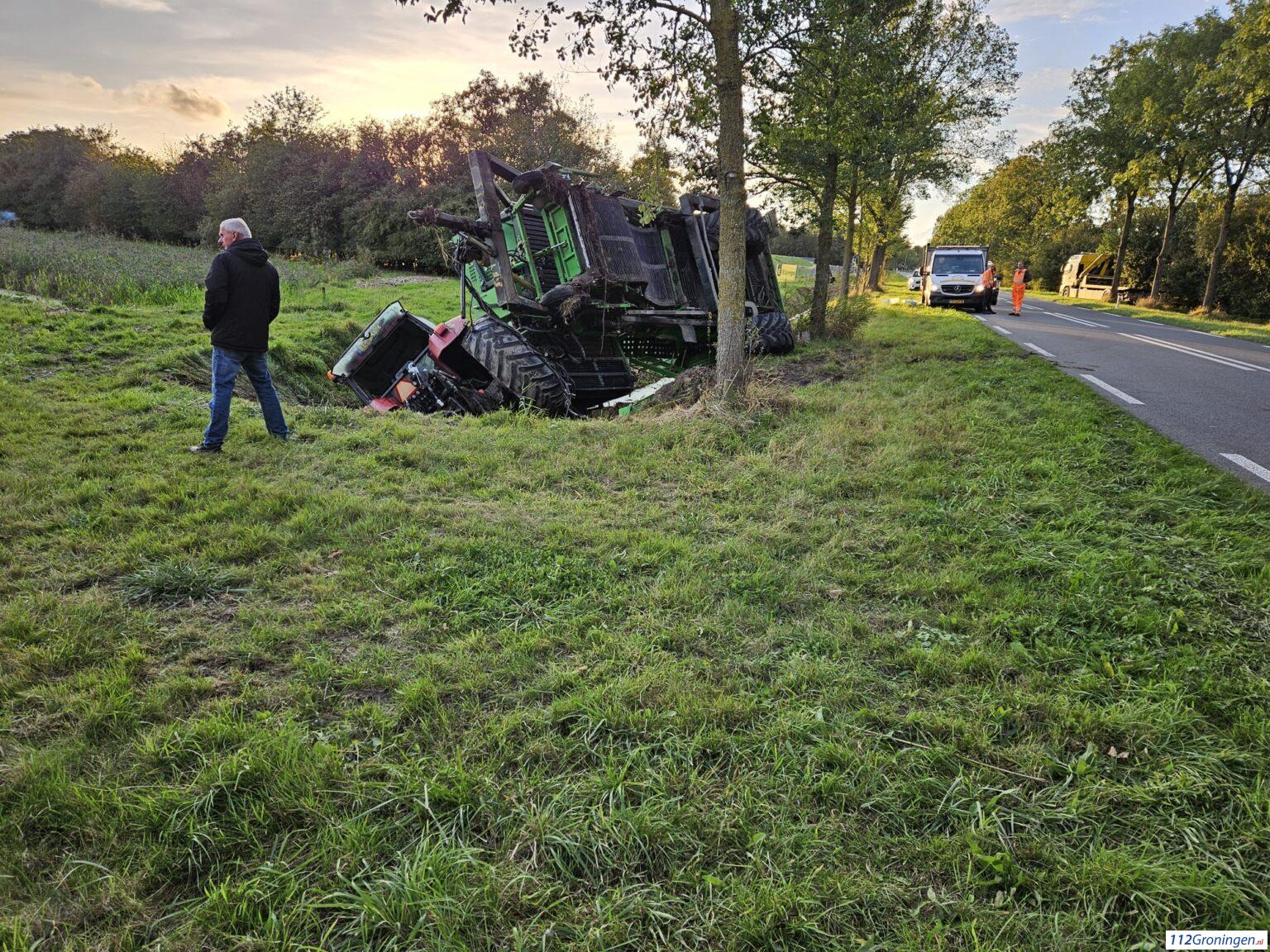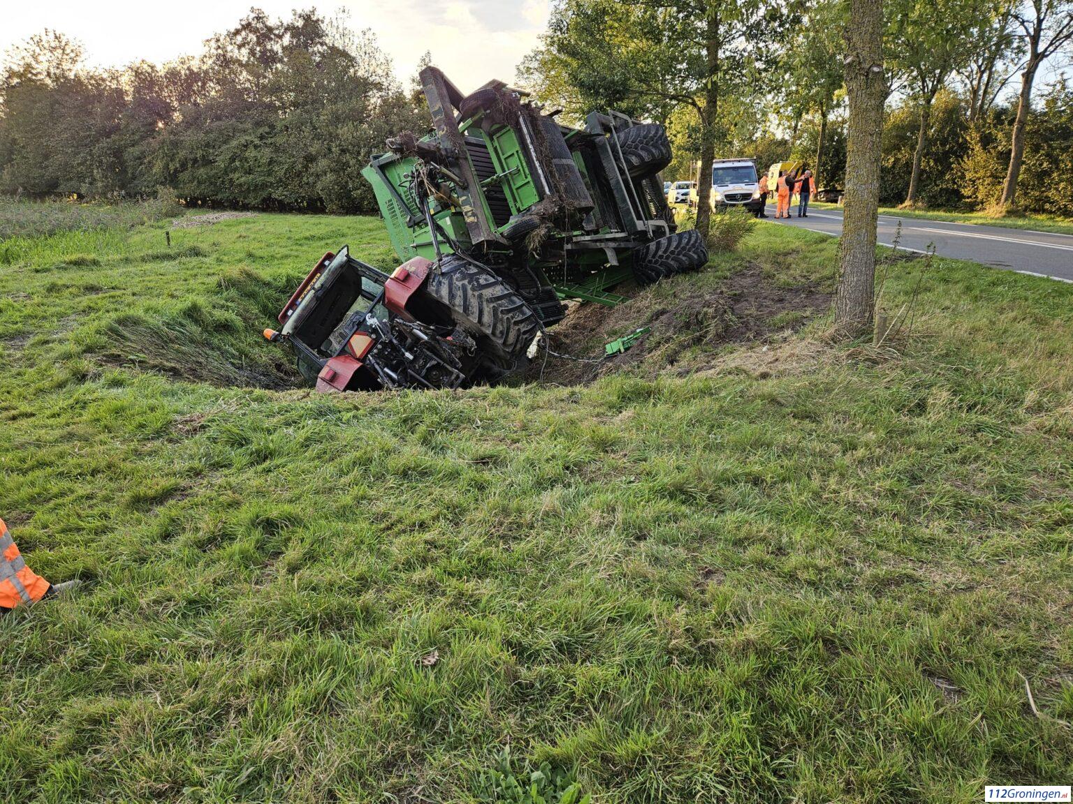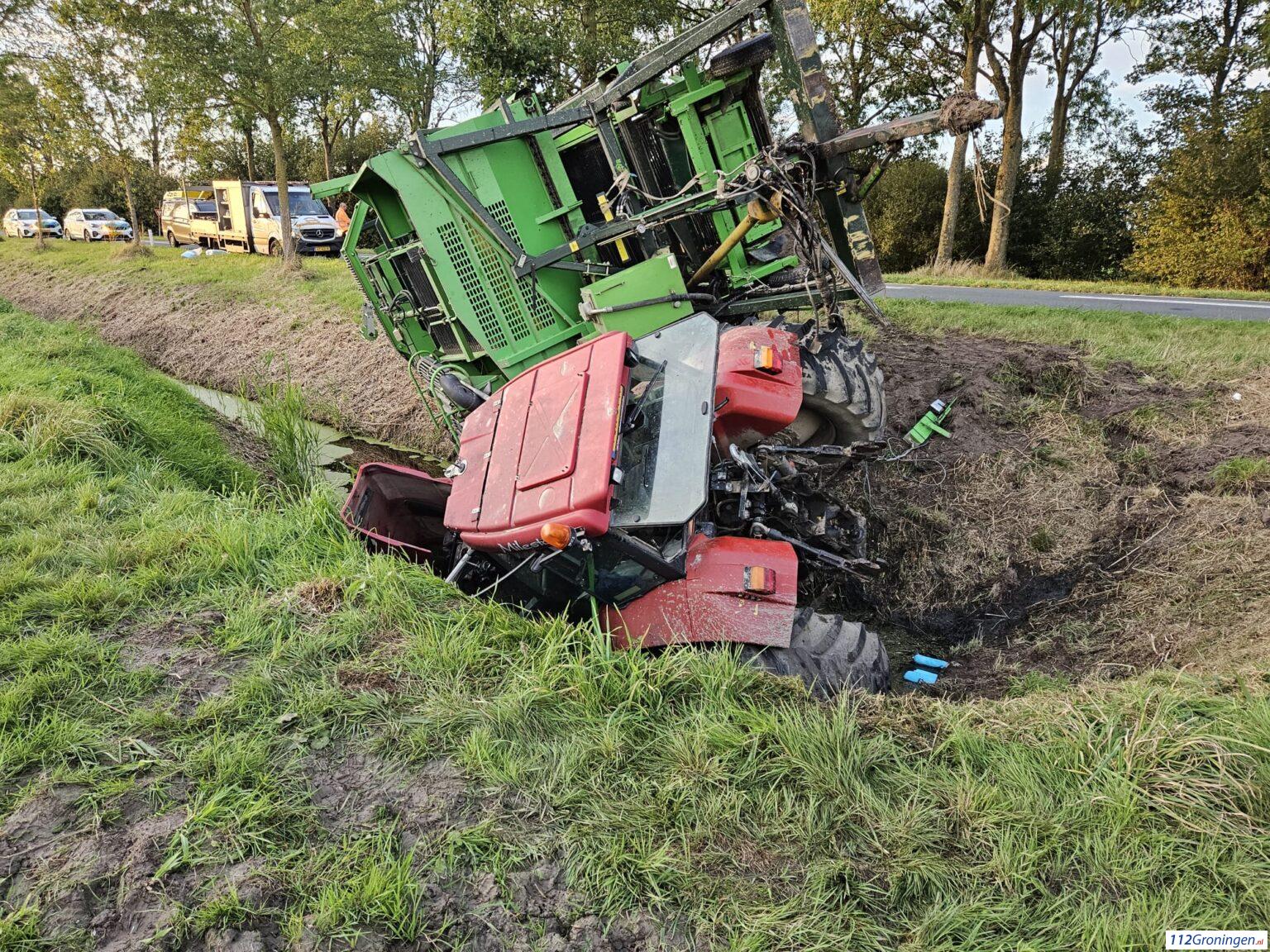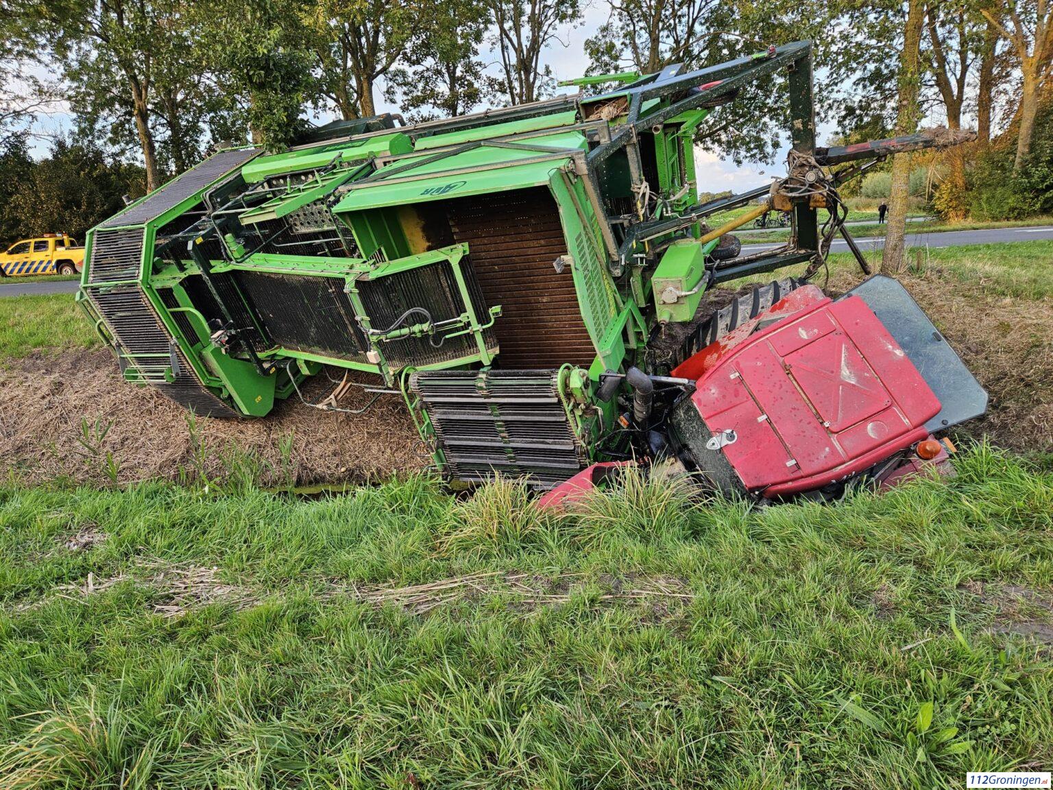 Uithuizen – Donderdagmiddag rond de klok van 16:00 uur is er een trekker met aardappelrooier erachter in de sloot beland naast de N363 bij Uithuizen.