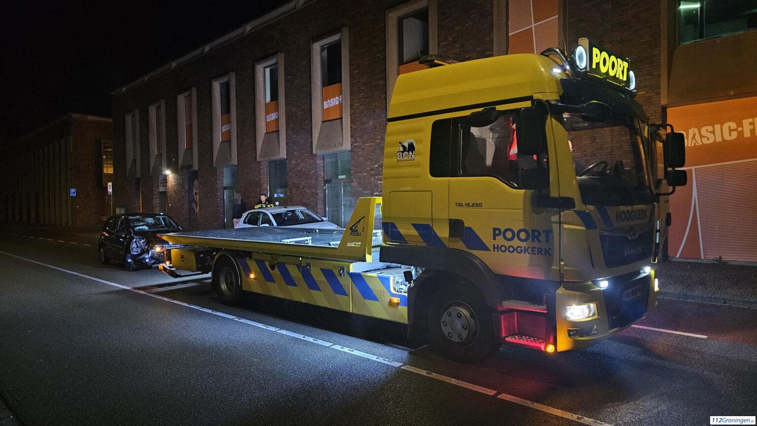De busbaan op de Westerhaven is deels gestremd door het ongeval. Bergingsbedrijf Poort is ter plaatse gekomen om de beschadigde auto af te slepen.