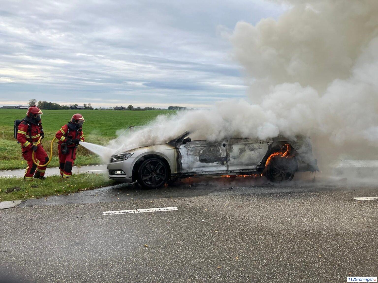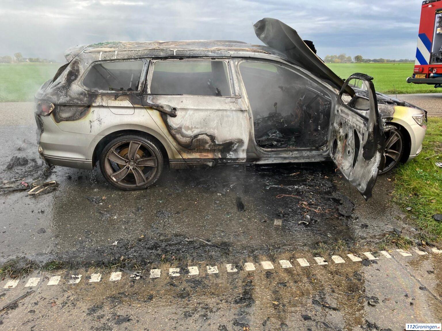 Den Ham – Op de Sietse Veldstraweg nabij Den Ham is zaterdagmiddag een auto volledig uitgebrand. De bestuurder ontdekte tijdens het rijden dat er iets mis was toen de auto in brand vloog.