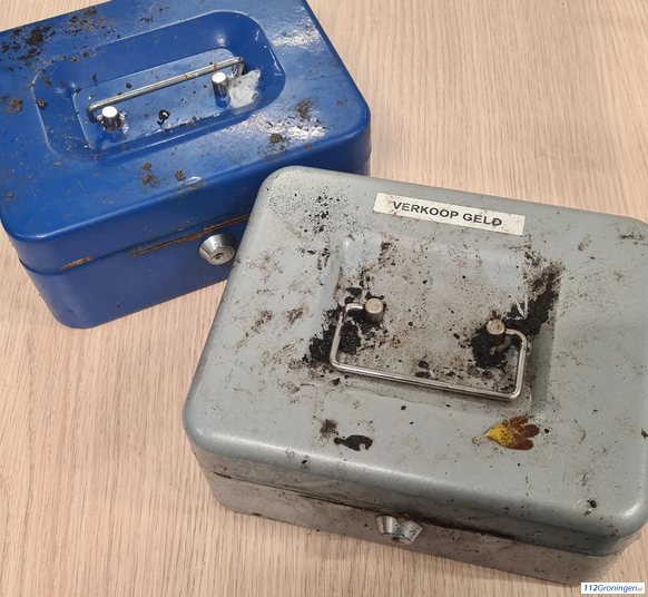 Leek – De politie heeft tijdens hun dienst twee ijzeren geldkisten gevonden, dit n.a.v. een melding van een oplettende burger. Op het grijze kistje staat een sticker met de tekst ‘verkoop geld’.