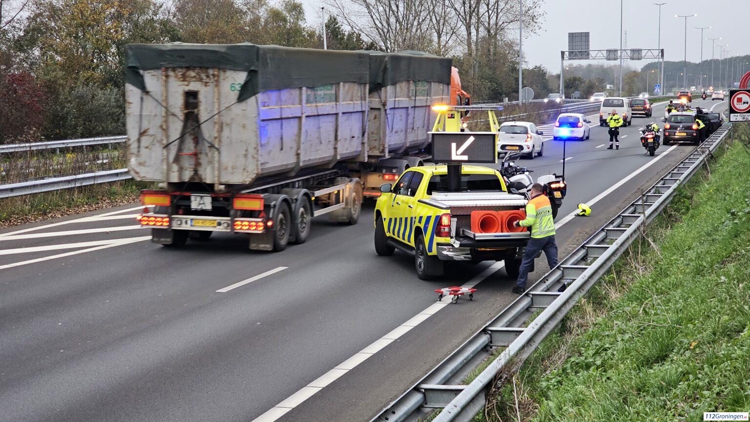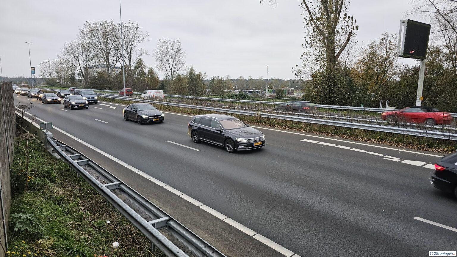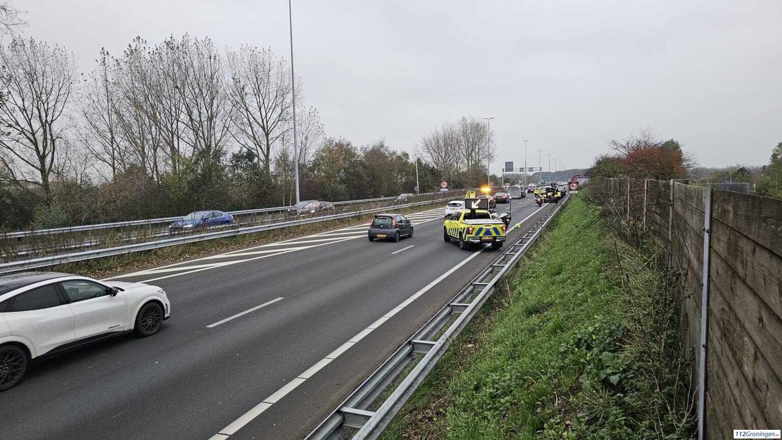 Rijkswaterstaat en politie regelden ter plaatsehet verkeer. Er ontstaat een lange file vanaf Groningen richting Drachten. 1 rijstrook was tijdelijk afgesloten tijdens de afhandeling van de aanrijding.