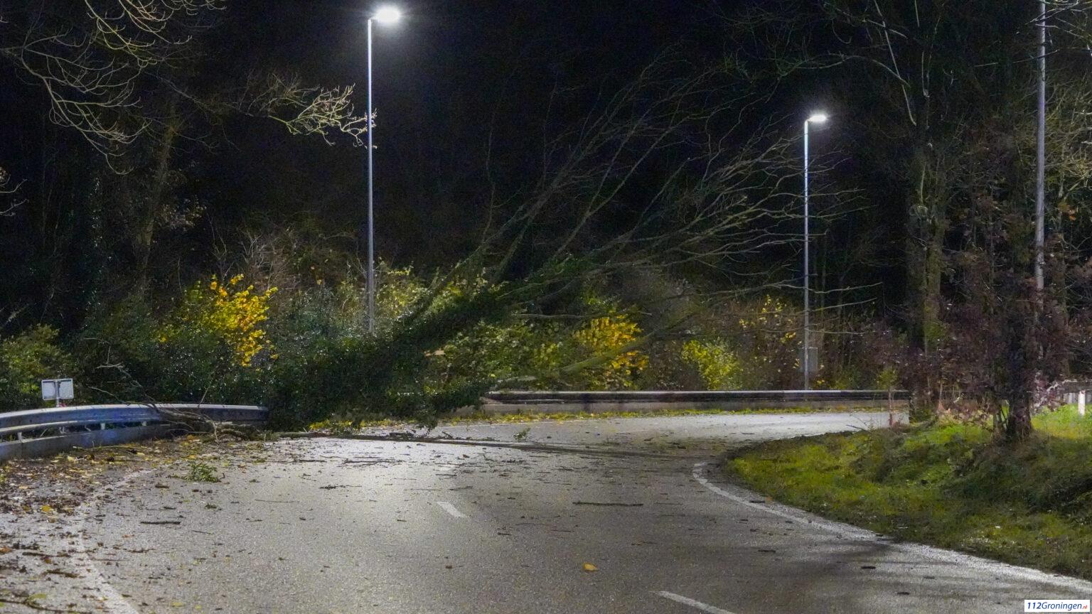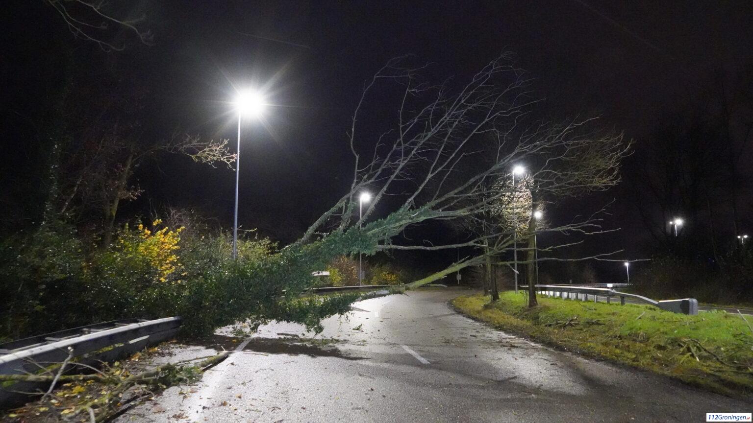 Groningen- De N46 tussen de afrit Beijum noord en de N370 richting Paddepoel was donderdagavond rond 23:15 uur tijdelijk afgesloten vanwege omgevallen bomen door storm Conall.