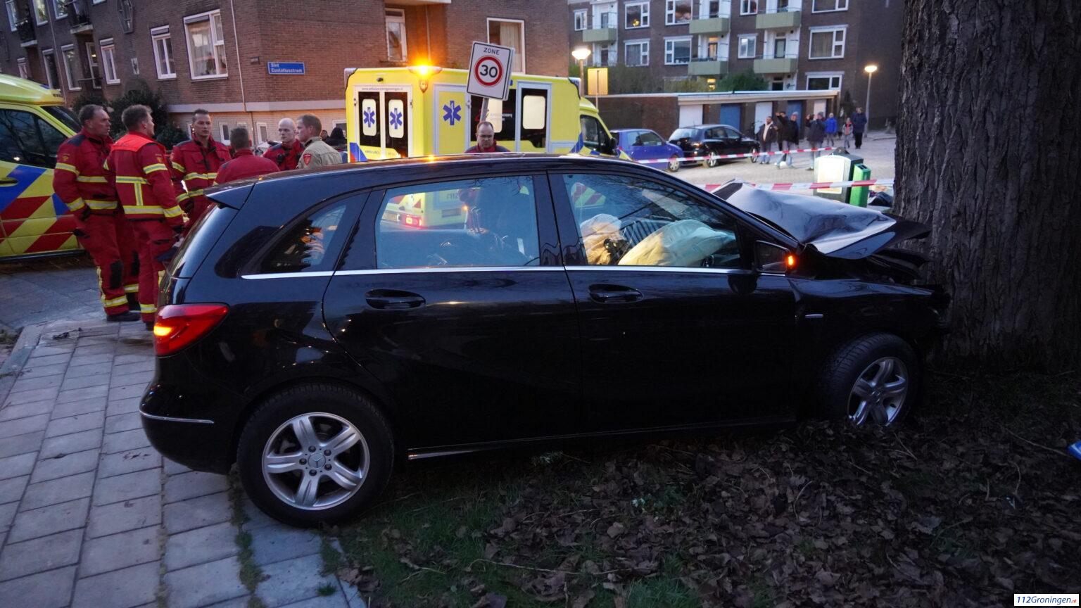 Een auto is nog door onbekende reden tegen een boom tot stilstand gekomen. Twee personen worden behandeld in de ambulance. De weg is voor al het overige verkeer afgesloten. De politie doet momenteel onderzoek naar de toedracht.