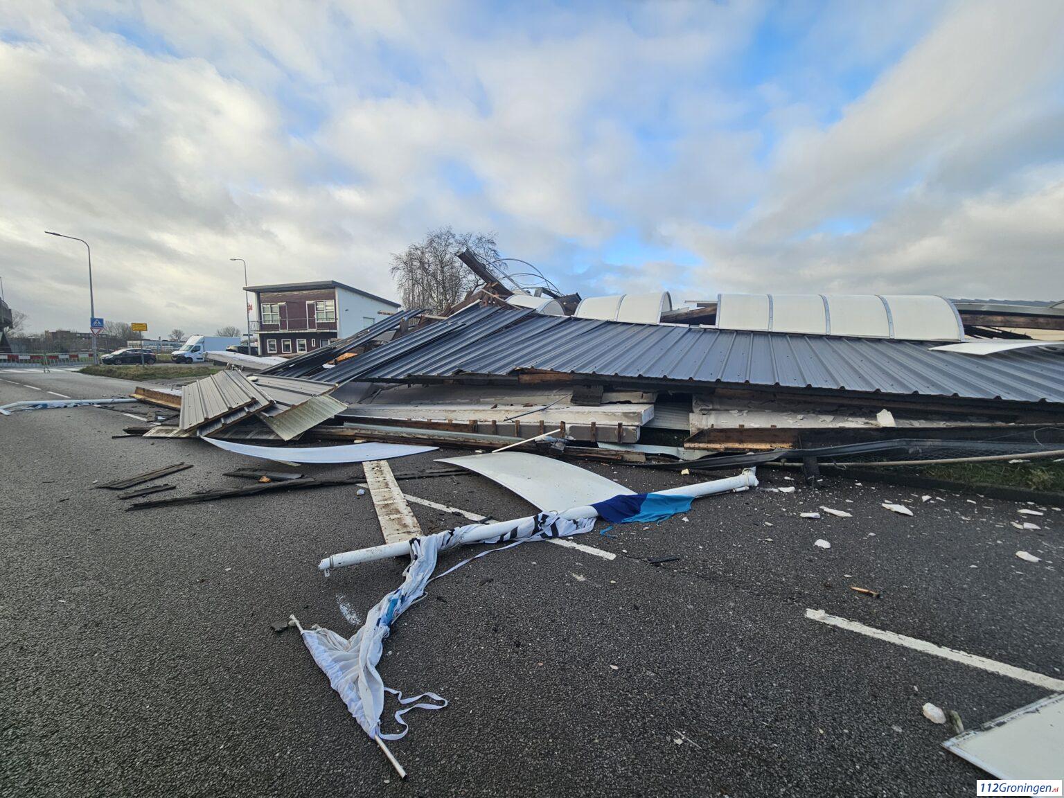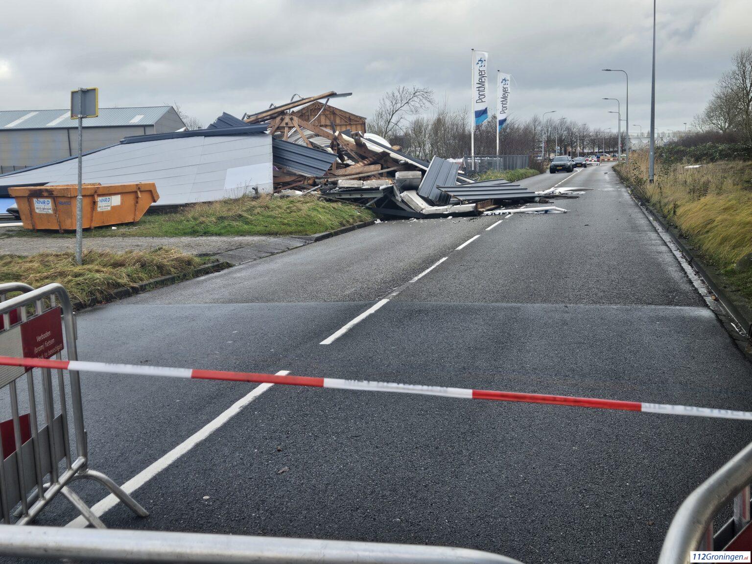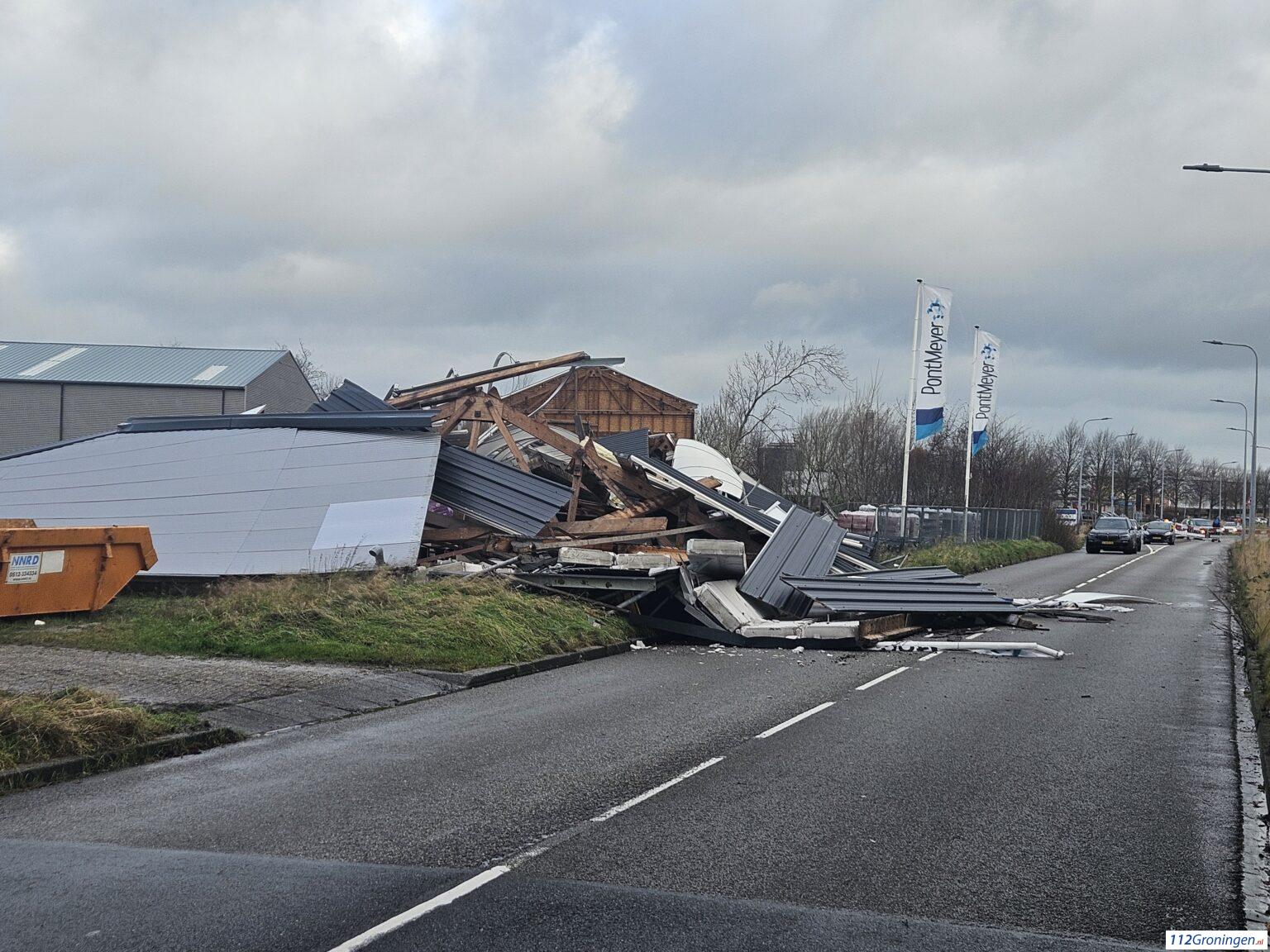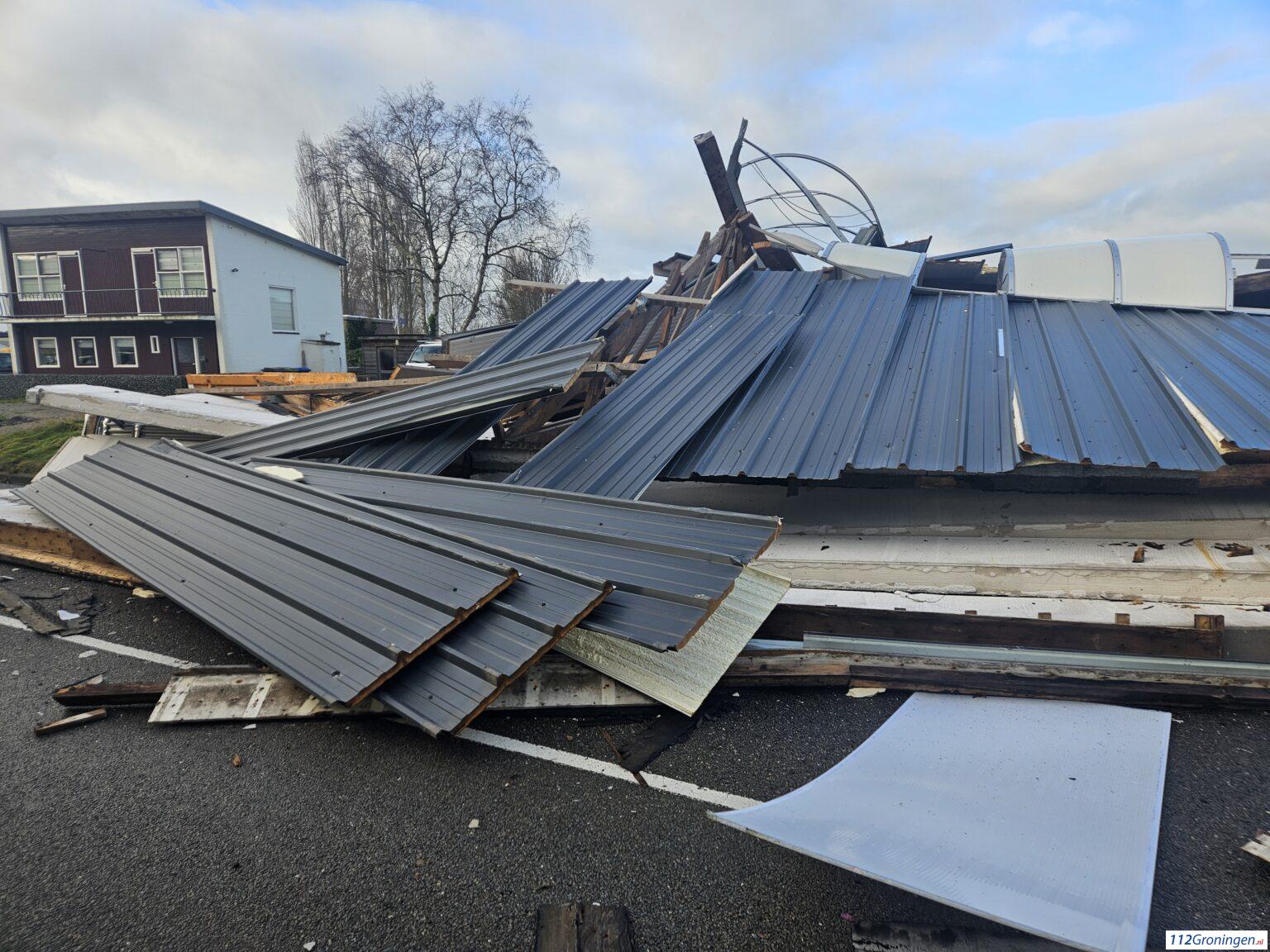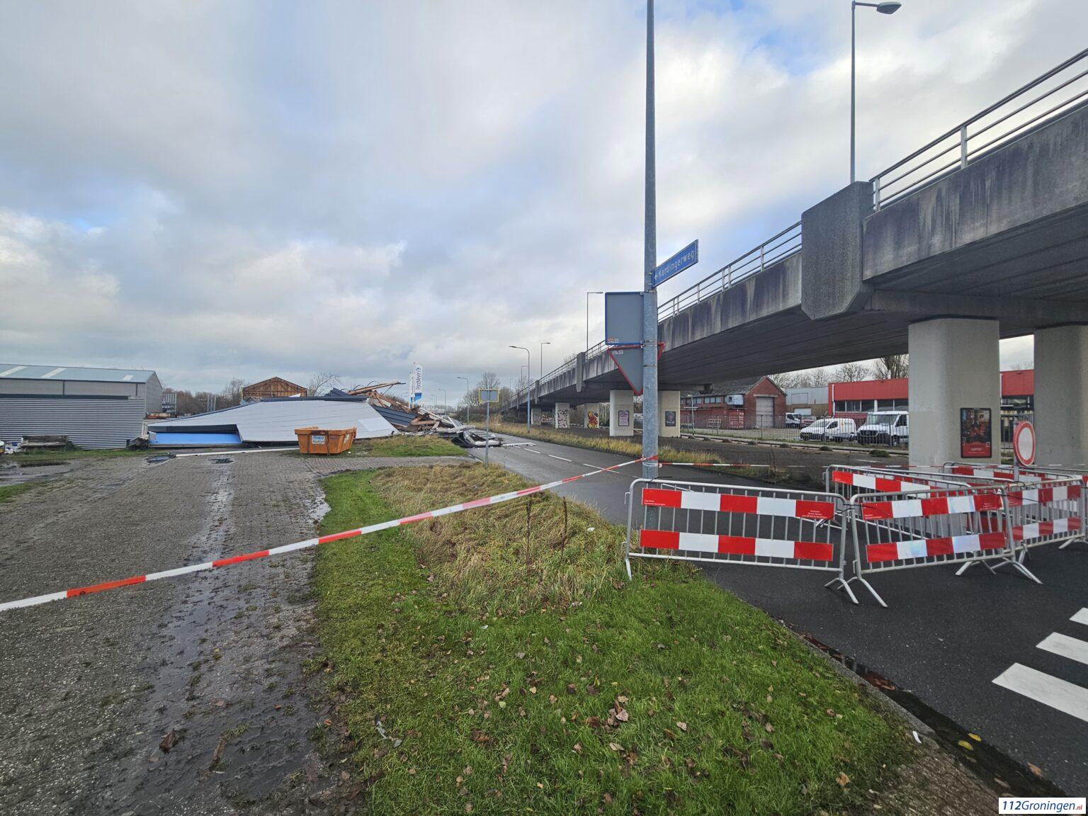 -Een pand van een bouwmarkt aan de Beckerweg in de stad Groningen is vrijdagochtend ook ingestort. Video.