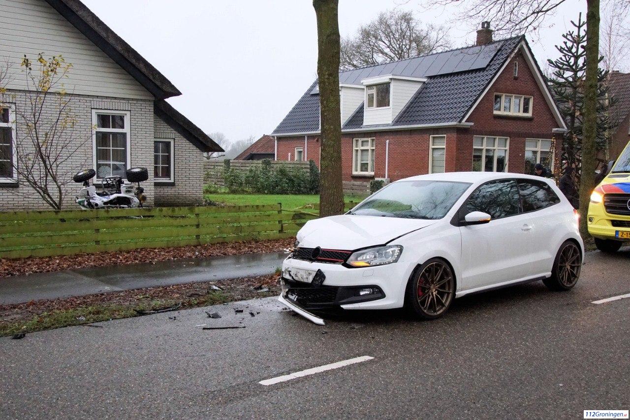 Wedde – Op de Hoofdweg Wedderveer in Wedde is tegen 13:00 een quad in aanraking gekomen met een auto. Door de aanrijding kwam de quad tot stilstand in een tuin net voor een woning.