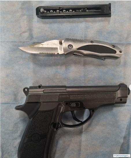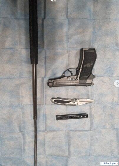 Tijdens de staande houding bleek de bestuurder onder invloed van alcohol en drugs te zijn. Bij doorzoeking van het voertuig werden een gasdrukpistool, een ploertendoder en een vouwmes aangetroffen.