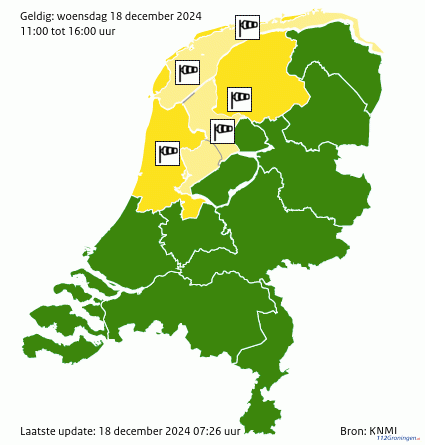 Regio – Vanaf het einde van de ochtend zijn er in het noordwesten zware windstoten mogelijk. Deze windstoten kunnen mogelijk voor overlast zorgen.