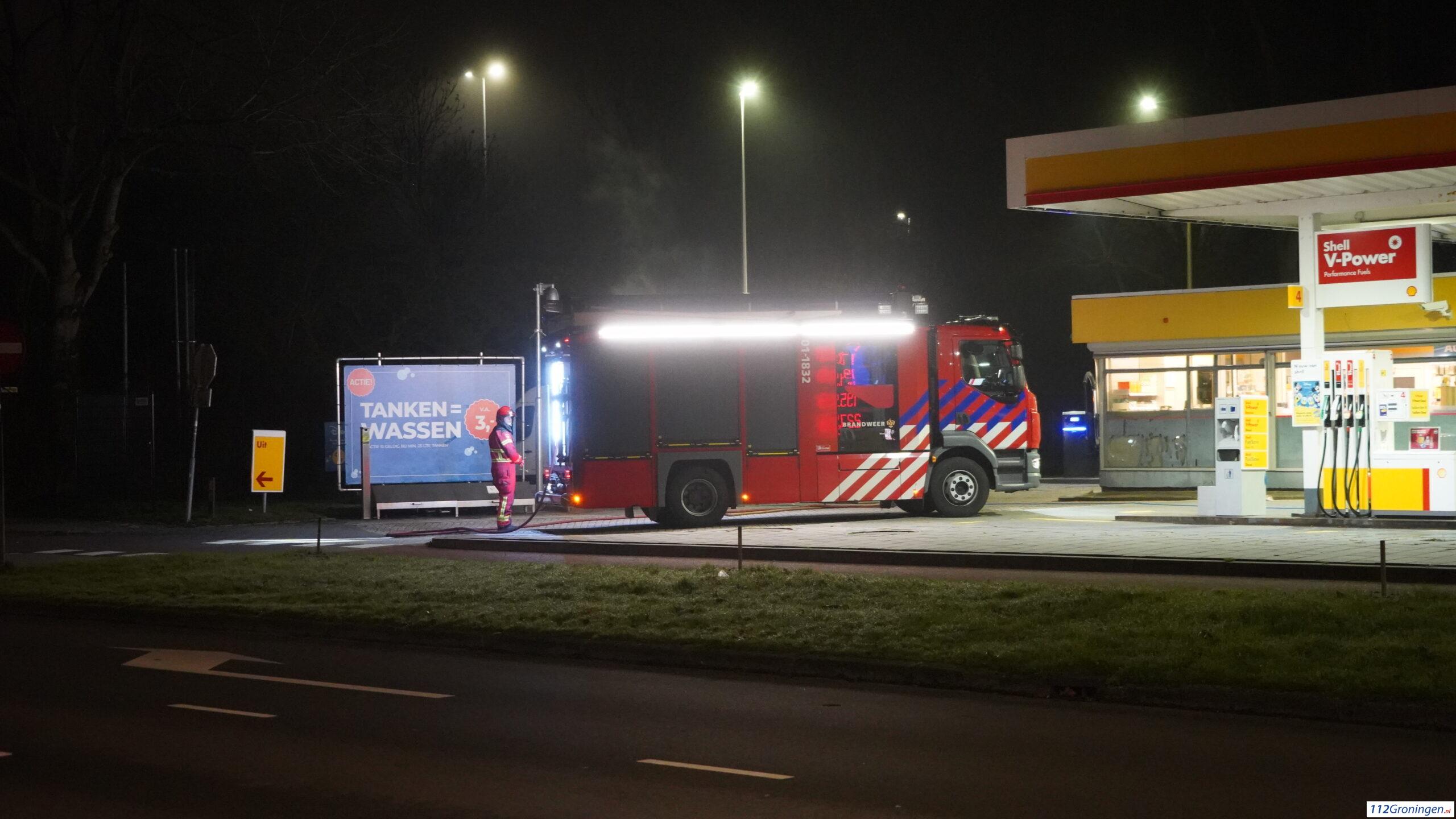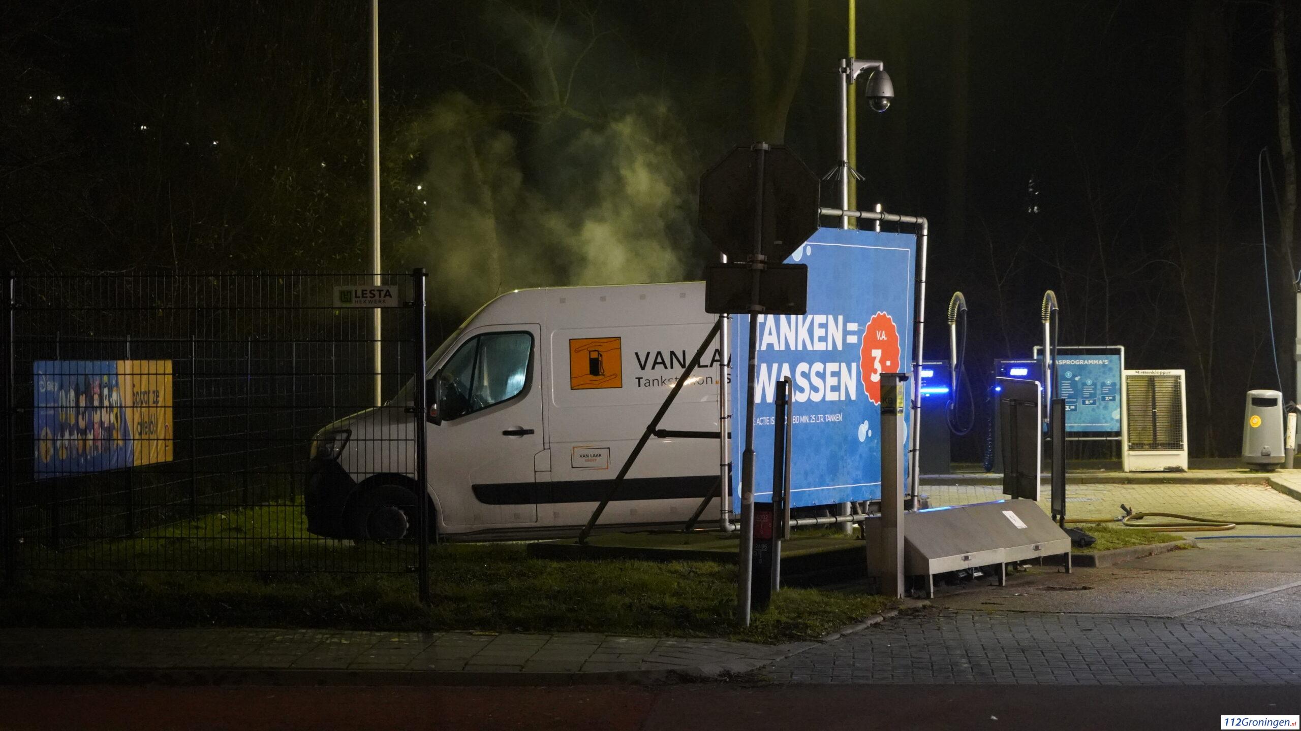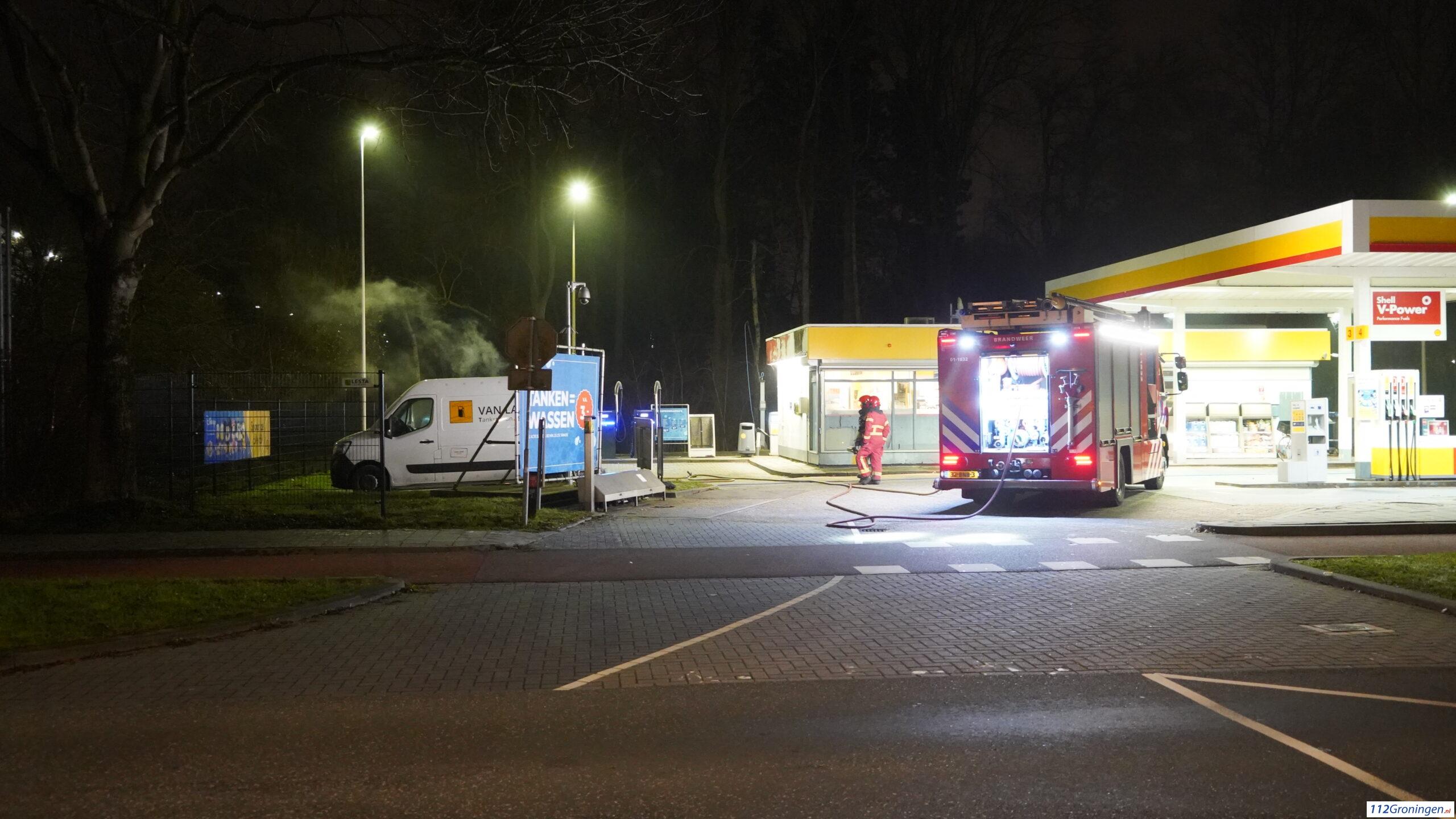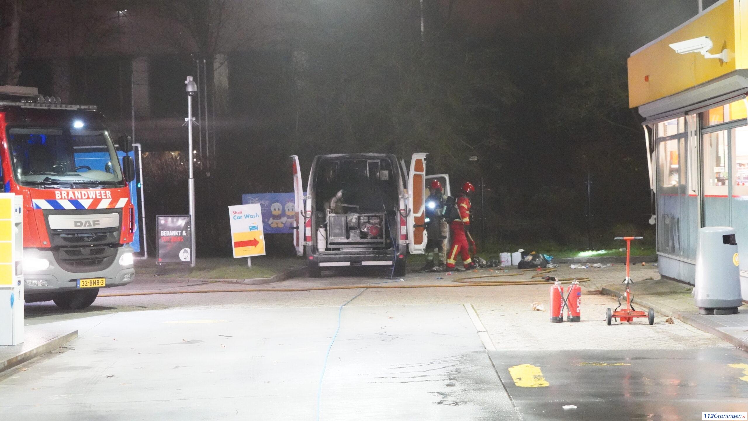 Bestelbus in brand bij Shell tankstation aan Zonnelaan in Groningen