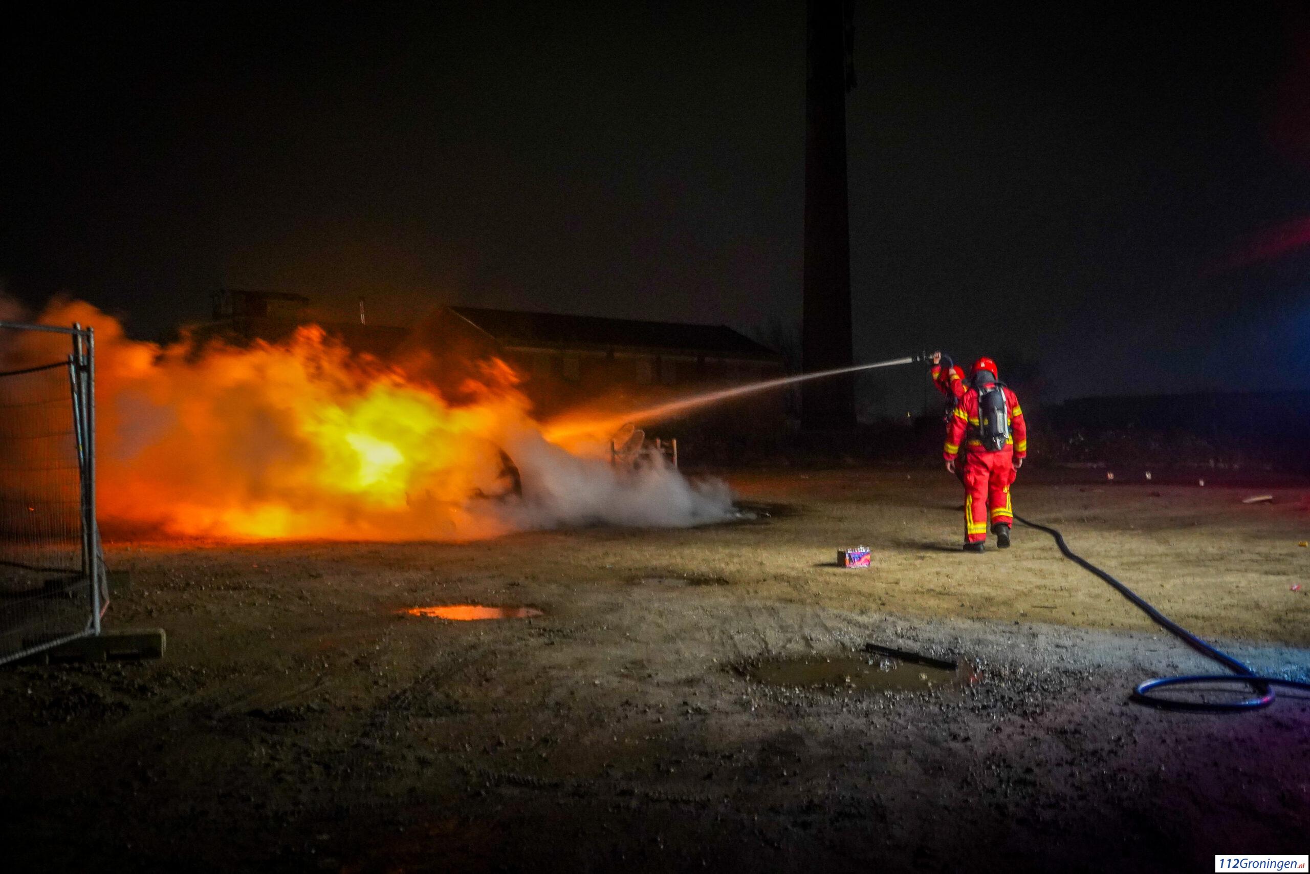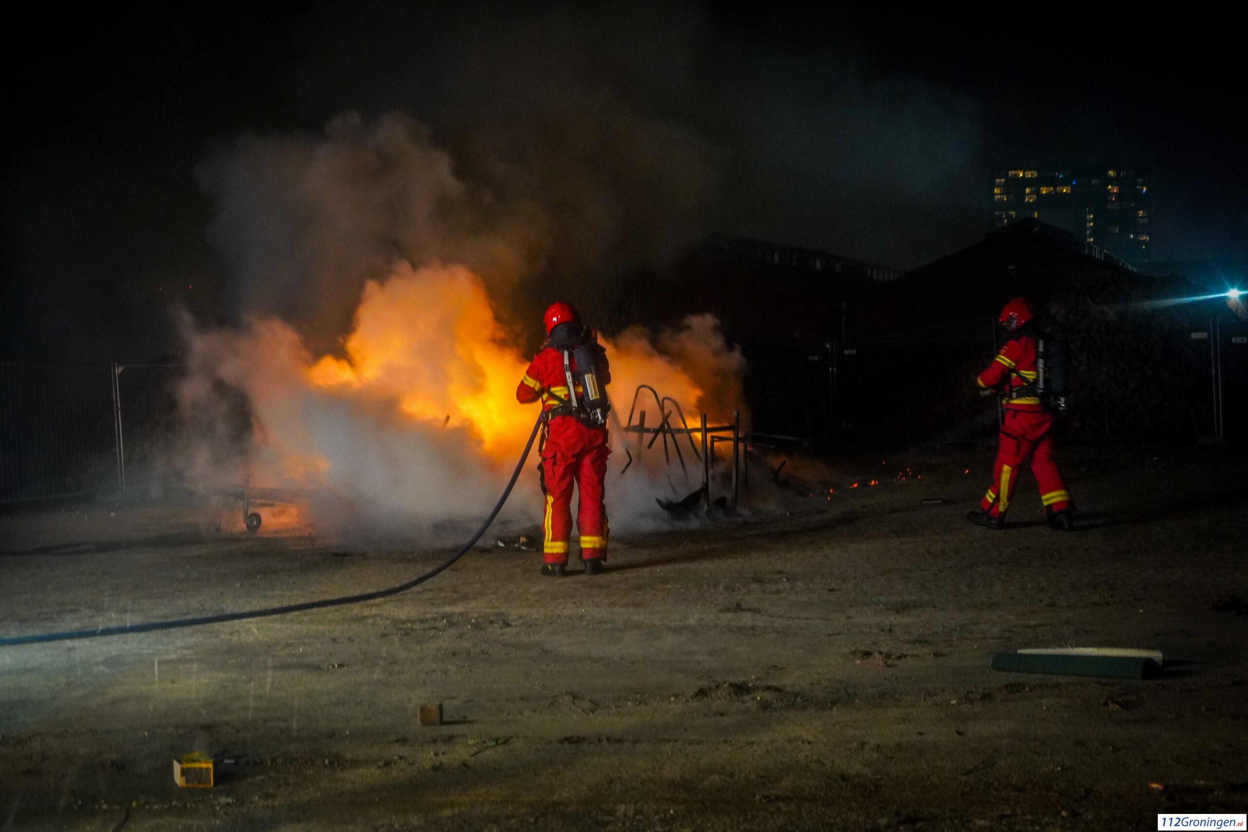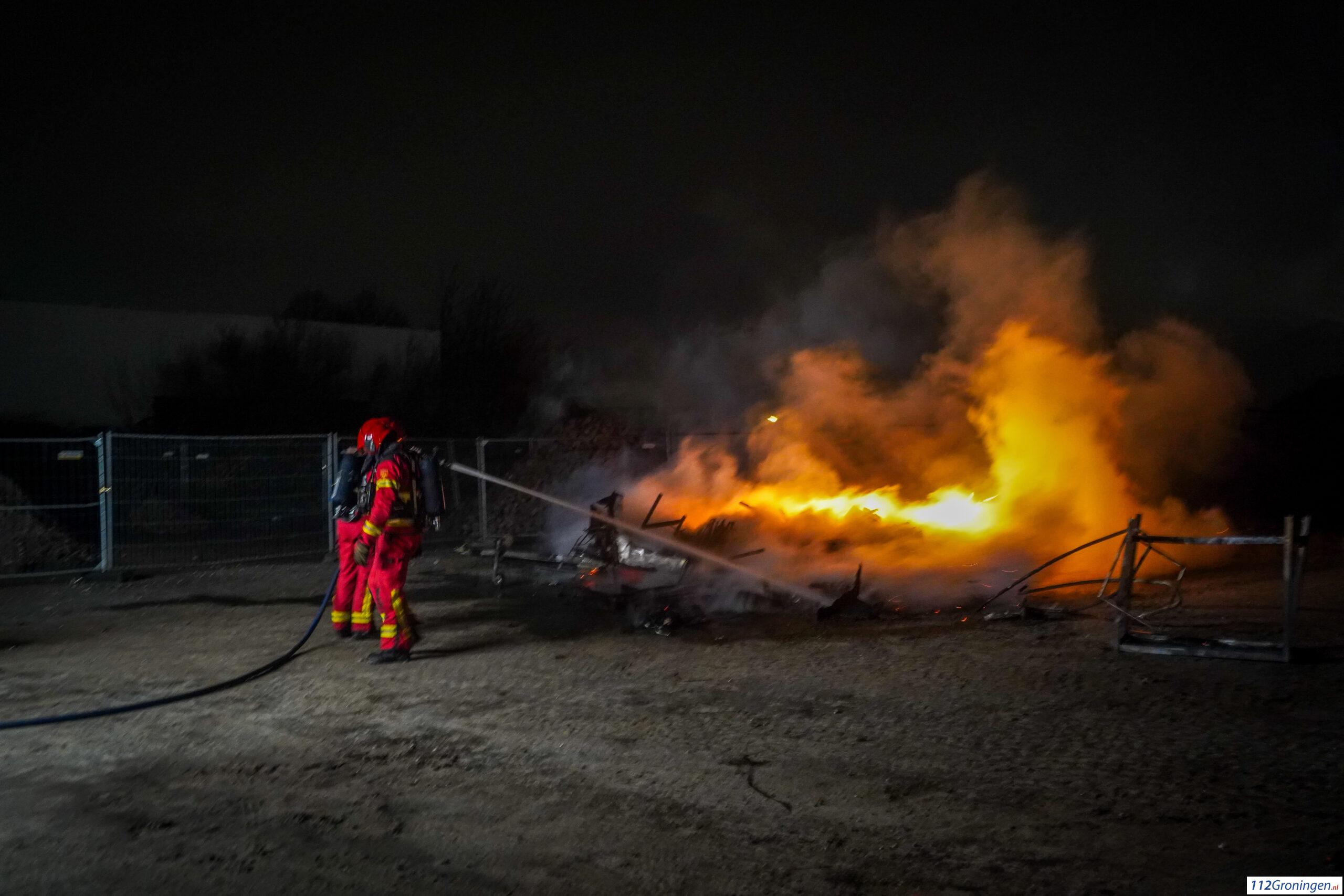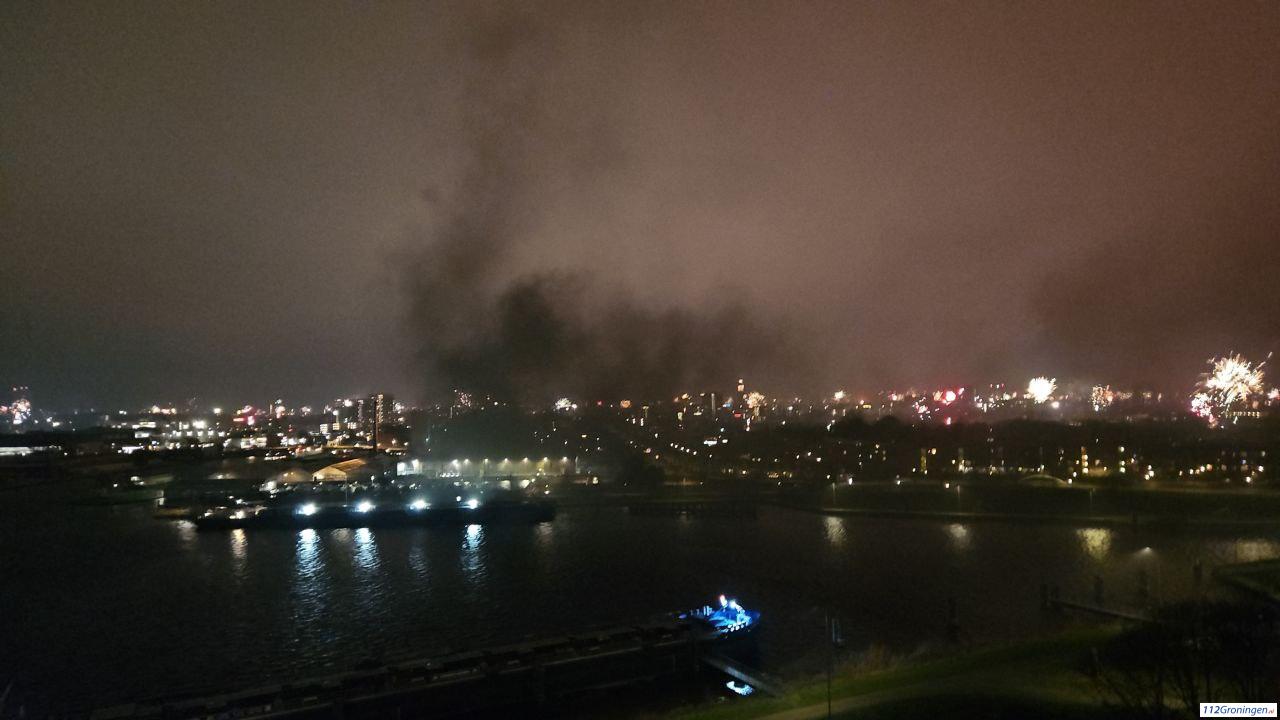 Groningen – Achter bij het Damsterdiep in Groningen heeft er in de nacht met oud en nieuw een grote afval brand plaatsgevonden.