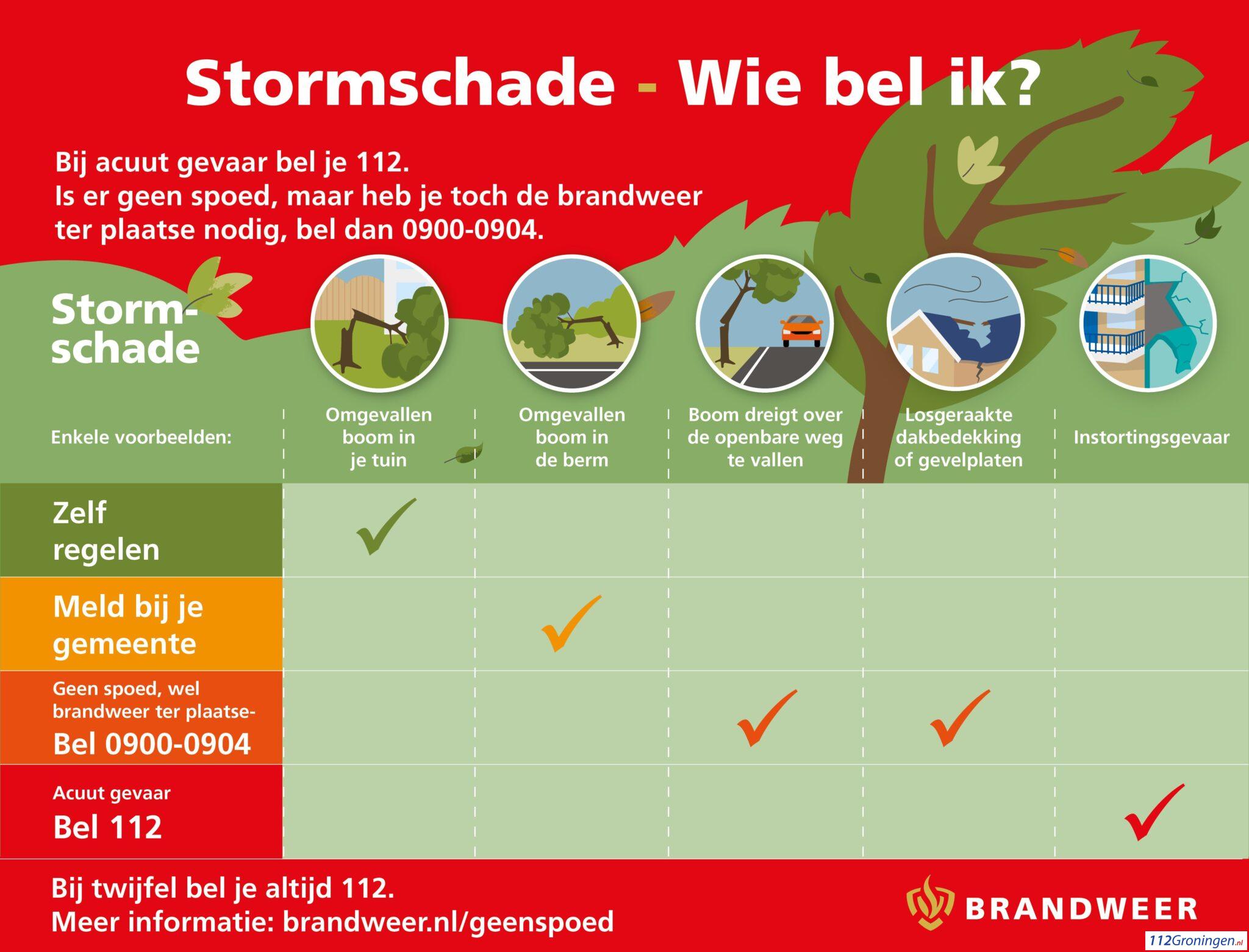 Groningen Bij een kantoorgebouw aan de Leonard Springerlaan, bij de Martiniplaza in de buurt, is stormschade gemeld. Dat gebeurde rond 16.20 uur.