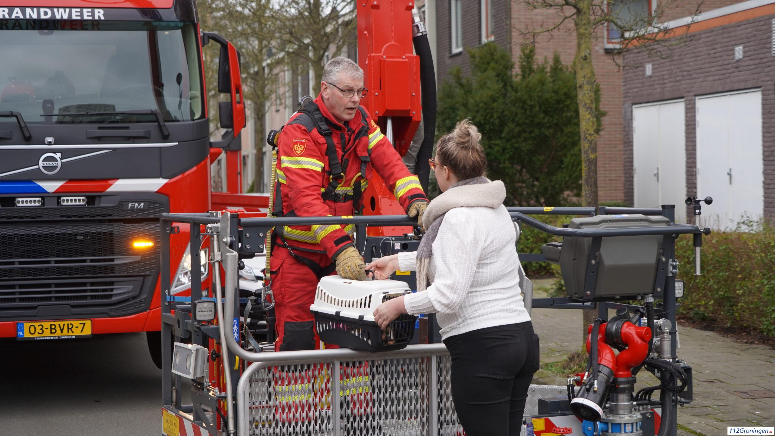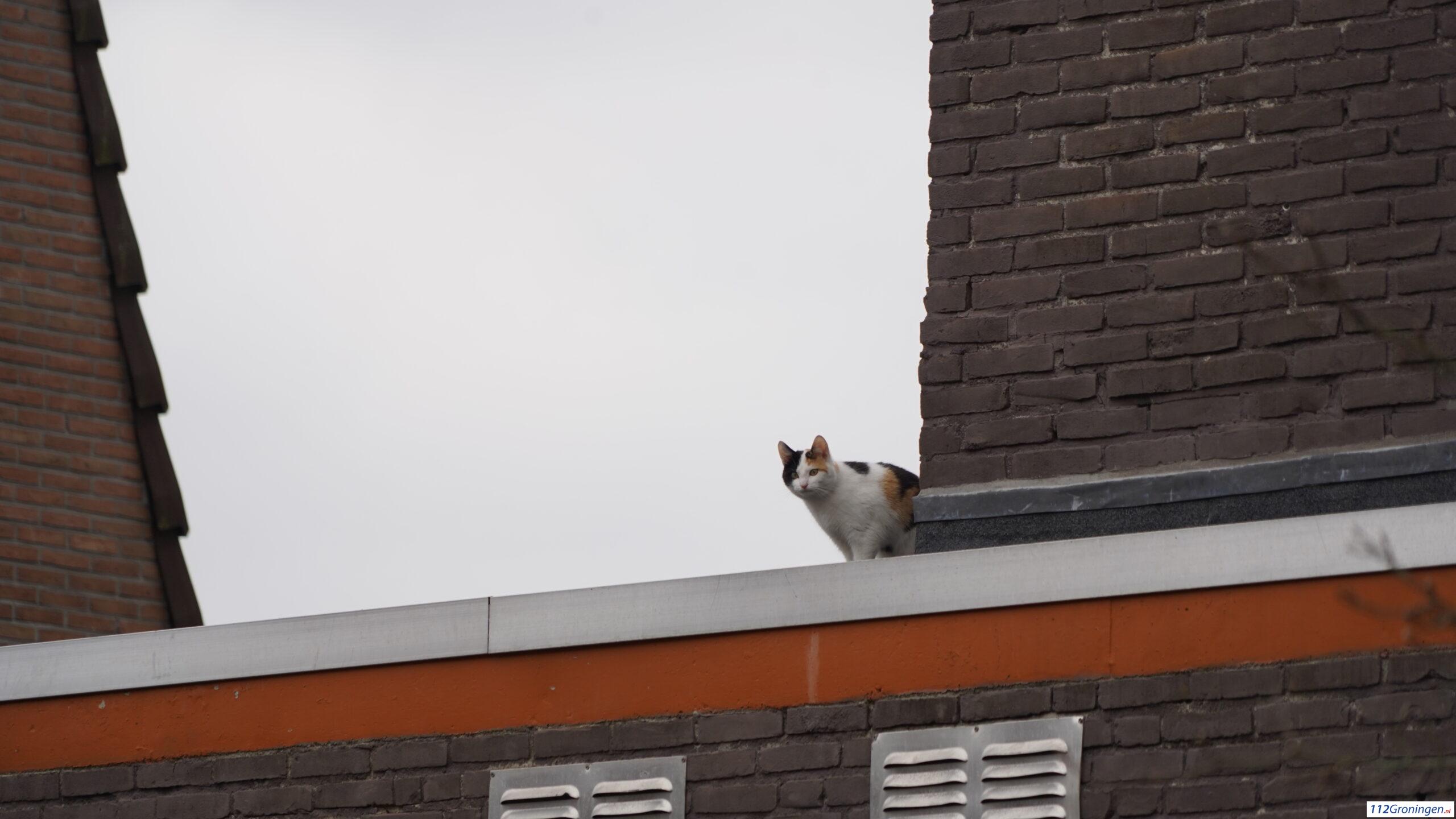 Groningen – De brandweer moest dinsdagmiddag uitrukken voor voor een kat op hoogte, deze durfde aan de Hippocrateslaan in Corpus den Hoorn niet meer van het dak te komen.