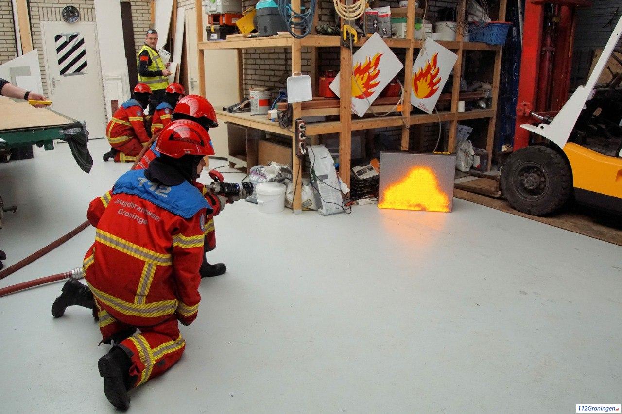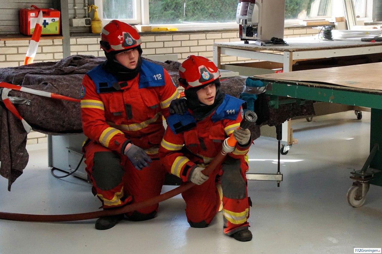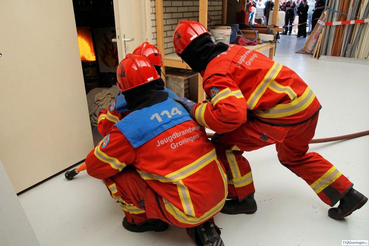 Voor de junioren werd een brandmelding bij een schildersbedrijf aan de Seendweg in Farmsum. In een stellage was brand ontstaan, die zich had uitgebreid naar een achtergelegen ruimte. De teams moesten snel en doeltreffend handelen om de brand onder controle te krijgen.
