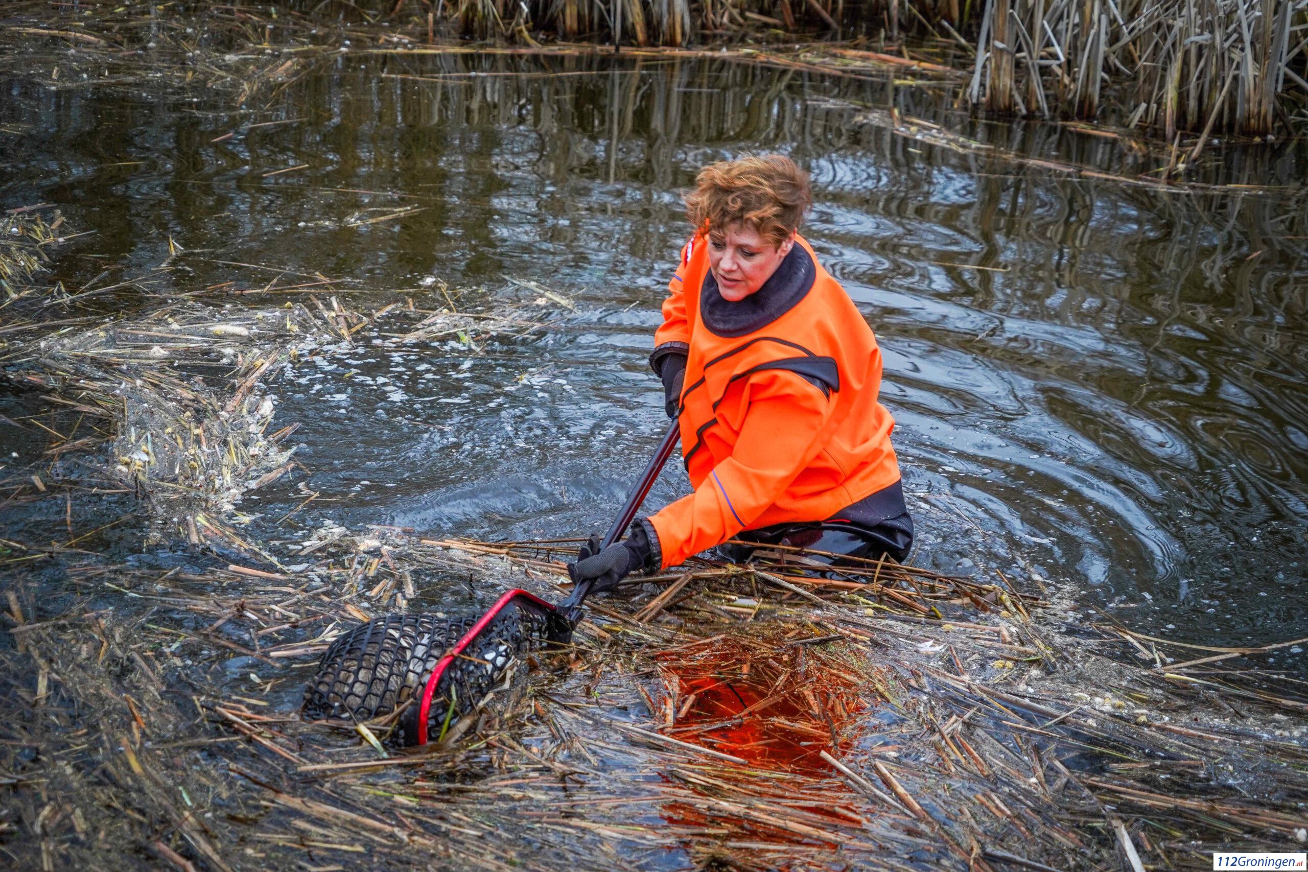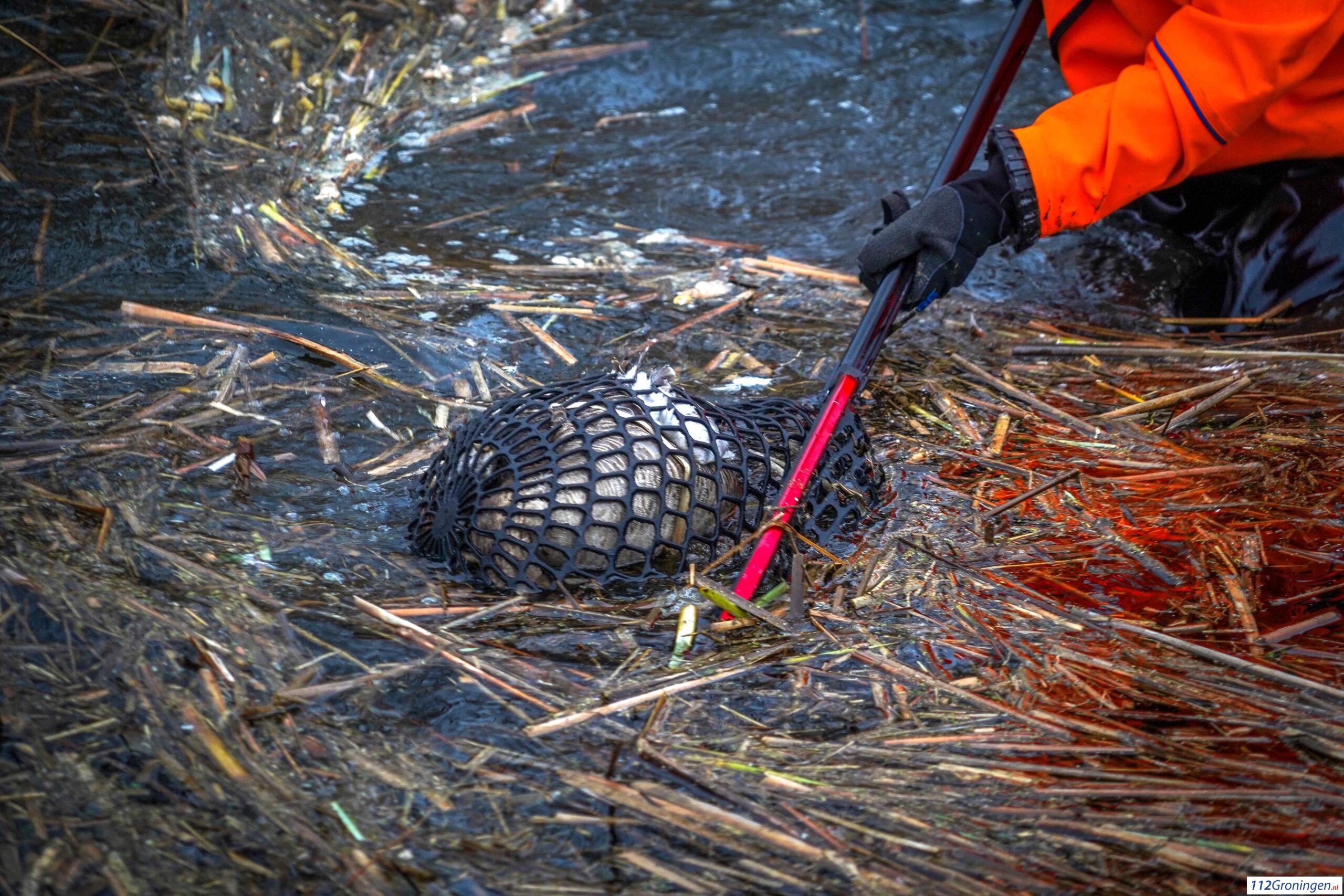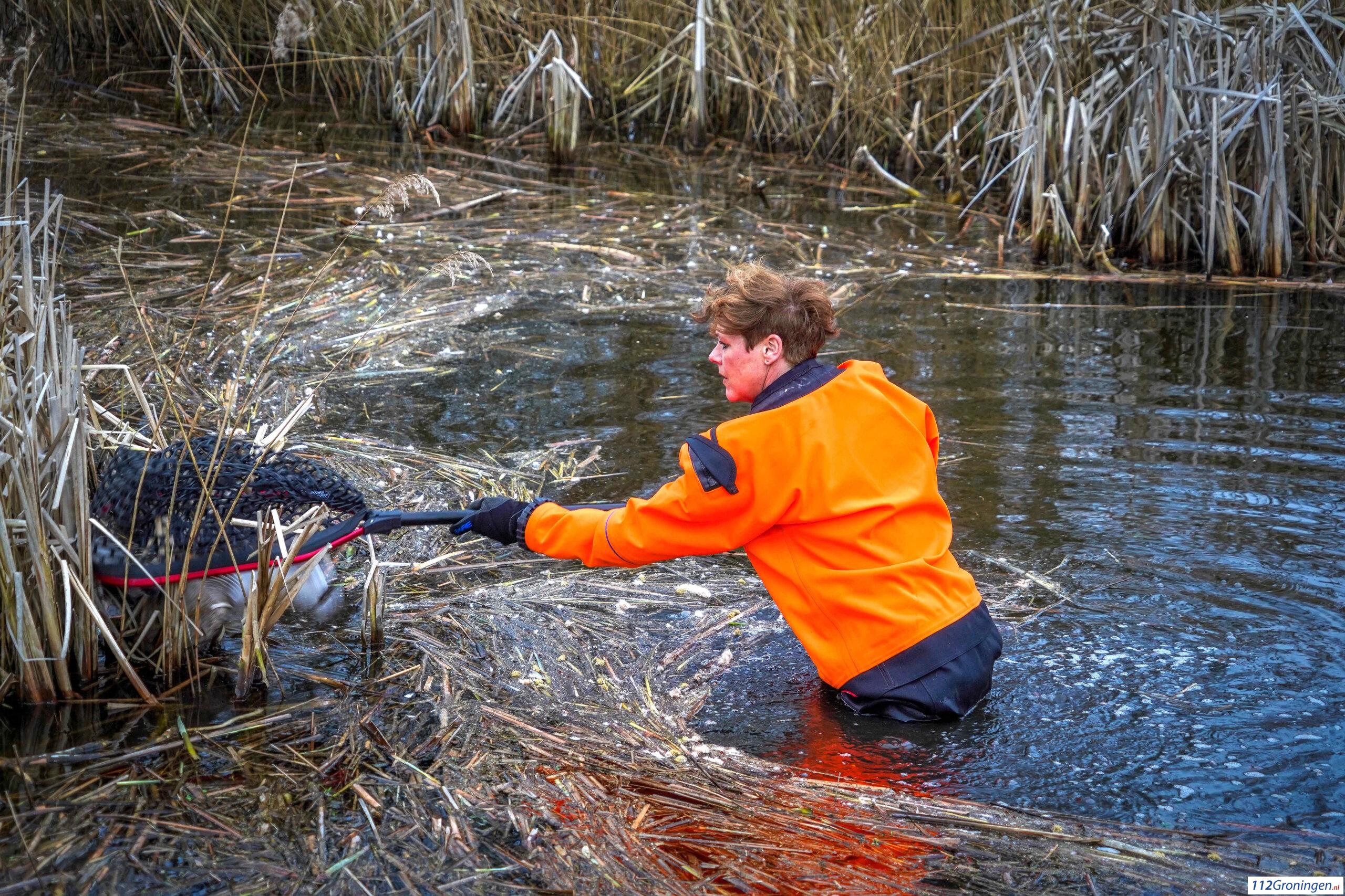 Groningen – Vrijdagavond om 18:05 uur kreeg de brandweer een melding van een dier in problemen bij het fietspad aan de Noorddijkerweg in Groningen. Het dier bleek in het water te liggen.