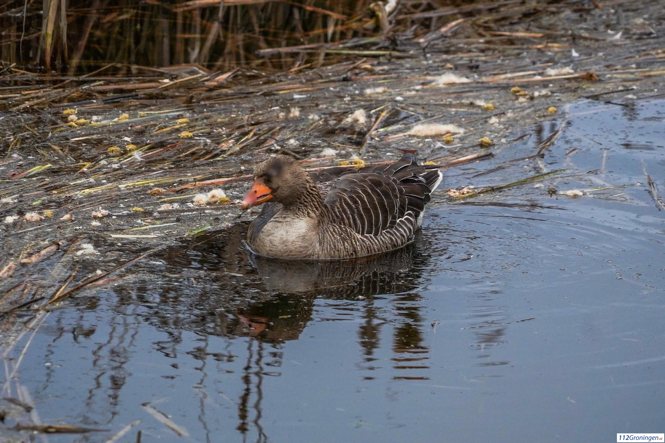 De brandweer heeft de gans uit het water gehaald. De dierenambulance kwam ter plaatse om verdere zorg te verlenen. Vermoed wordt dat het dier mogelijk besmet is met vogelgriep.
