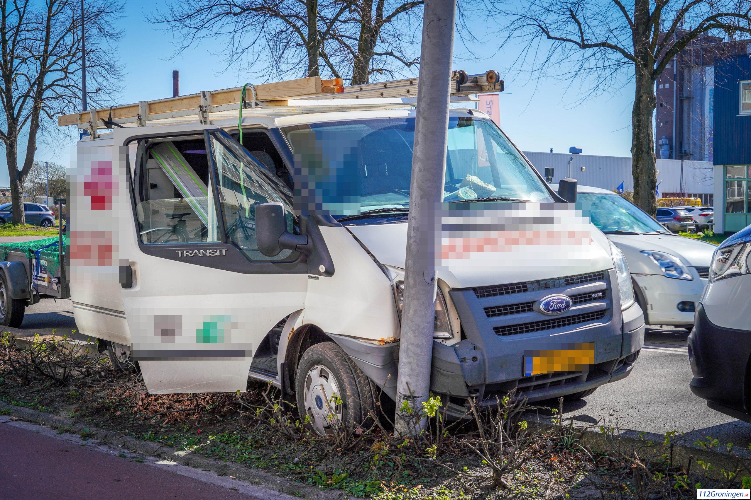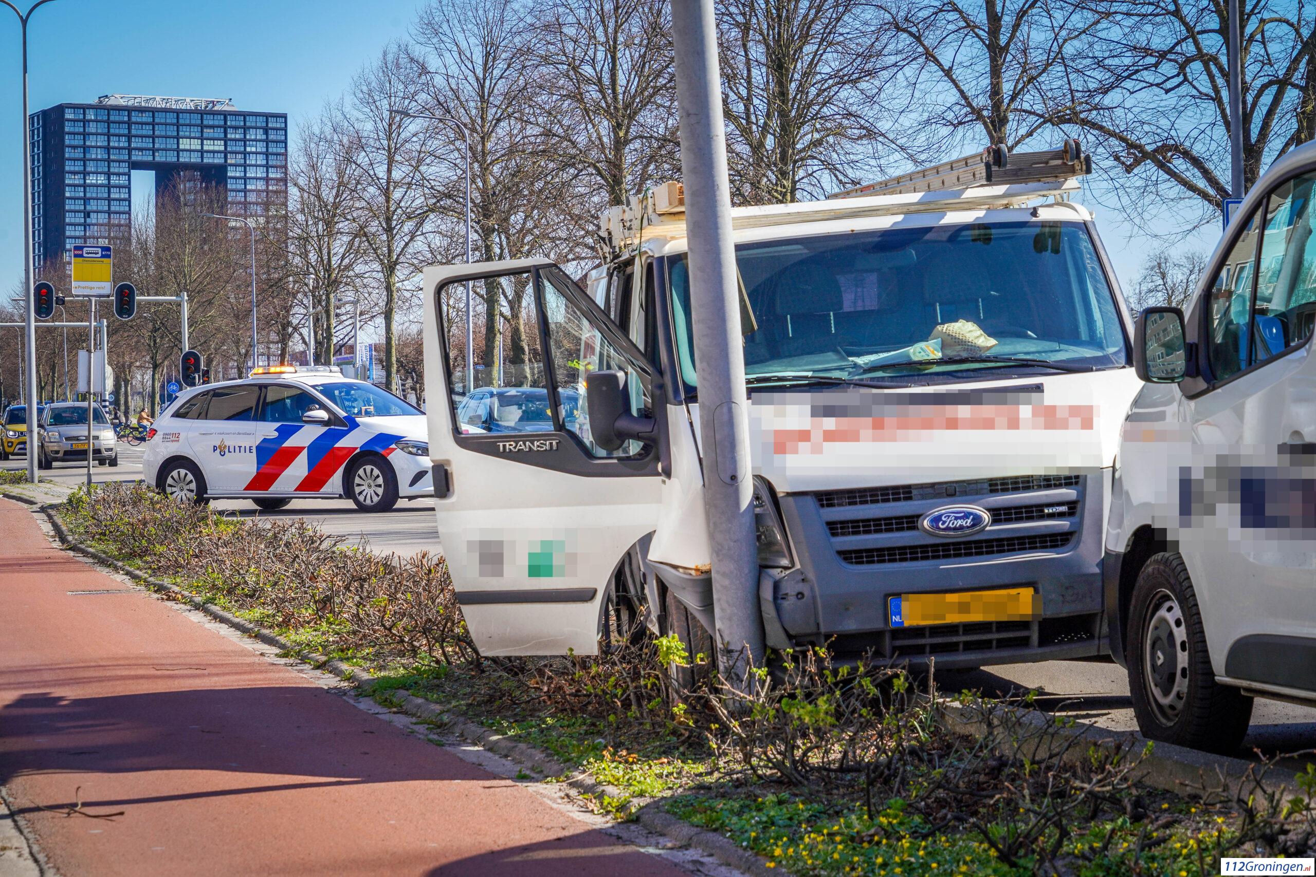 Groningen- Op het Damsterdiep heeft dinsdag aan het begin van de middag een eenzijdig ongeval plaatsgevonden waarbij een busje tegen een lantaarnpaal is gereden.