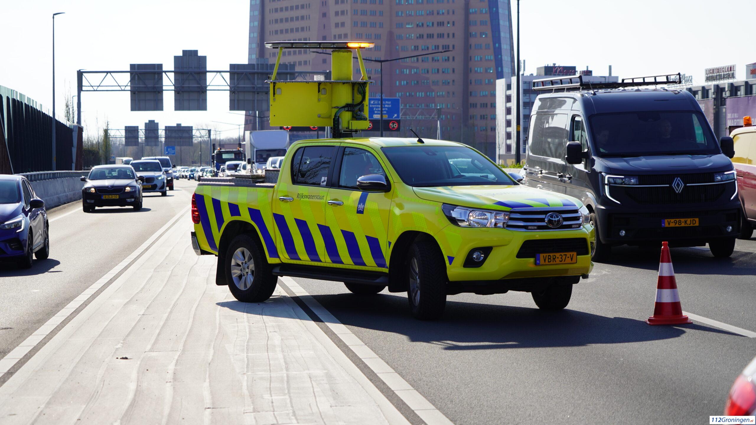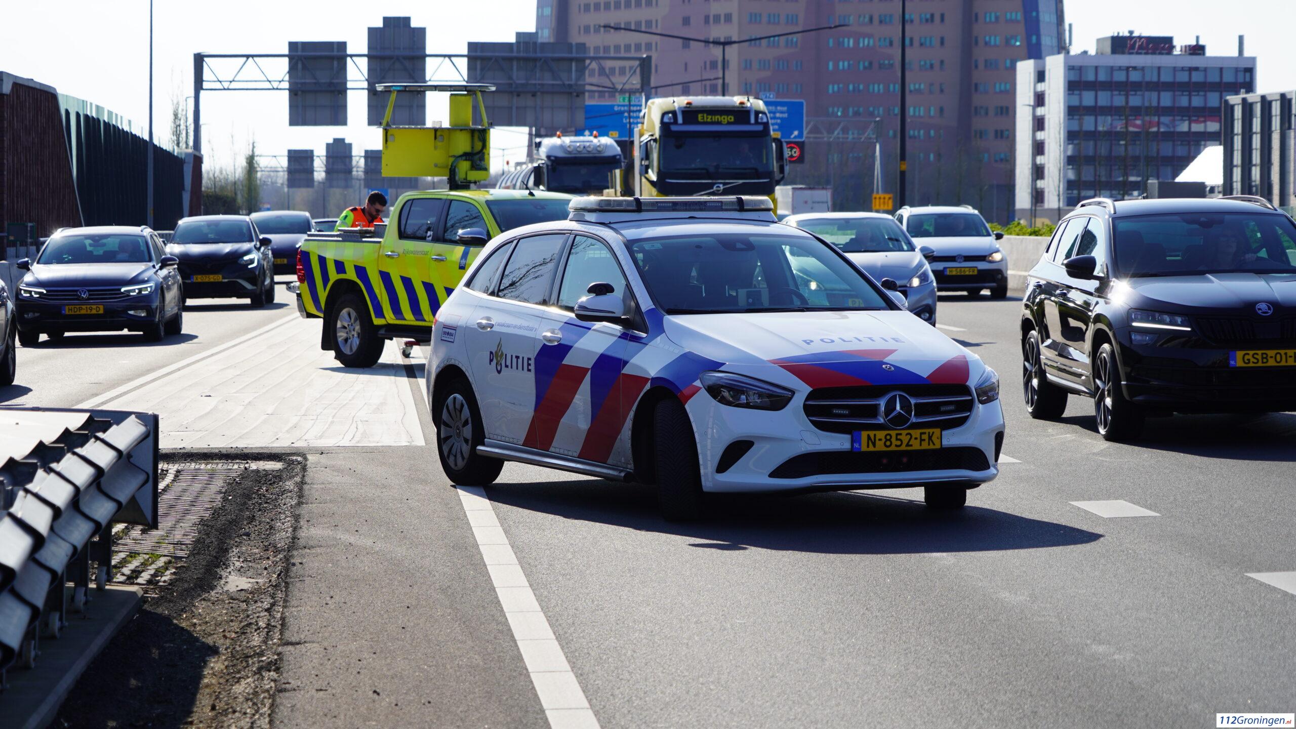 Hulpdiensten waren snel ter plaatse. 1 rijstrook was tijdelijk afgesloten. De file vanuit Hoogkerk groeide snel. Poort kwam voor afsleep.