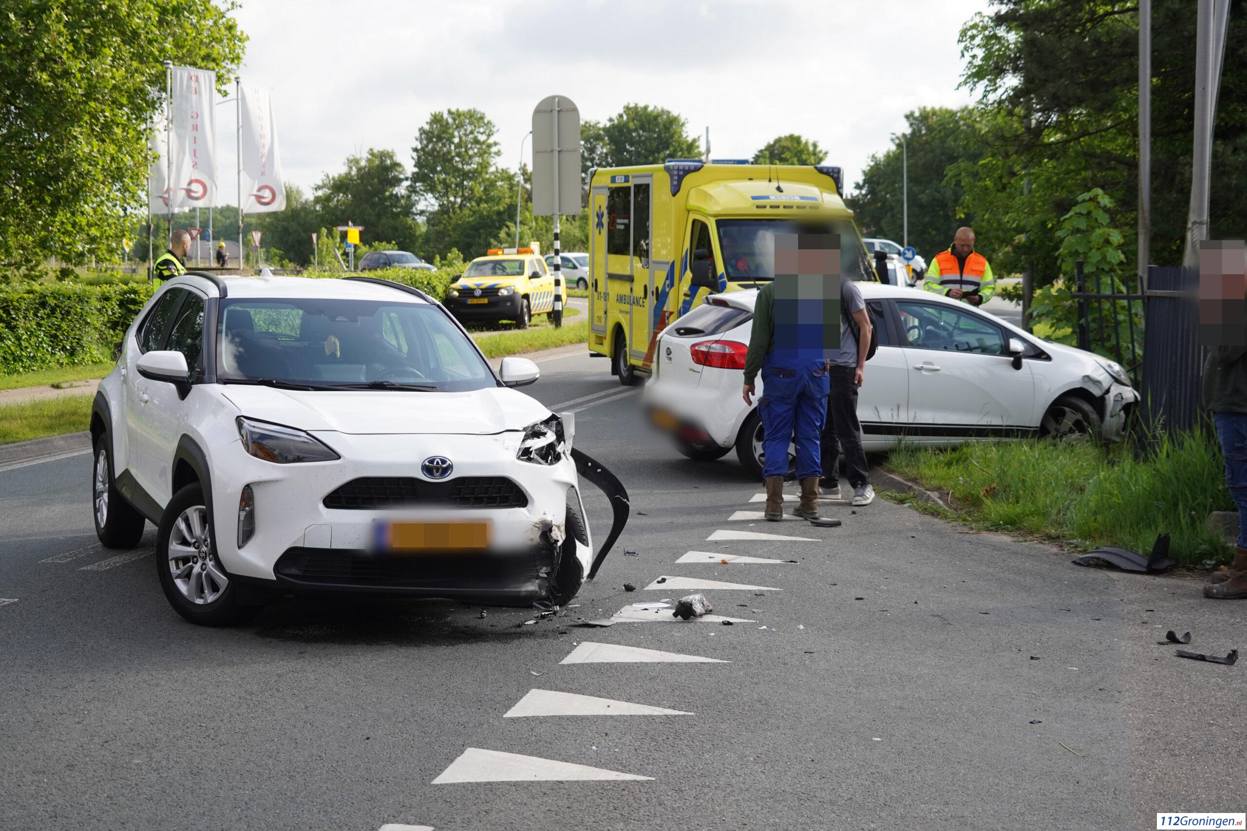 Eén van de auto’s kwam tot stilstand tegen een hekwerk van een bedrijfsperceel. De betrokken zijn behandeld door het ambulancepersoneel. Niemand hoefde mee naar het ziekenhuis.