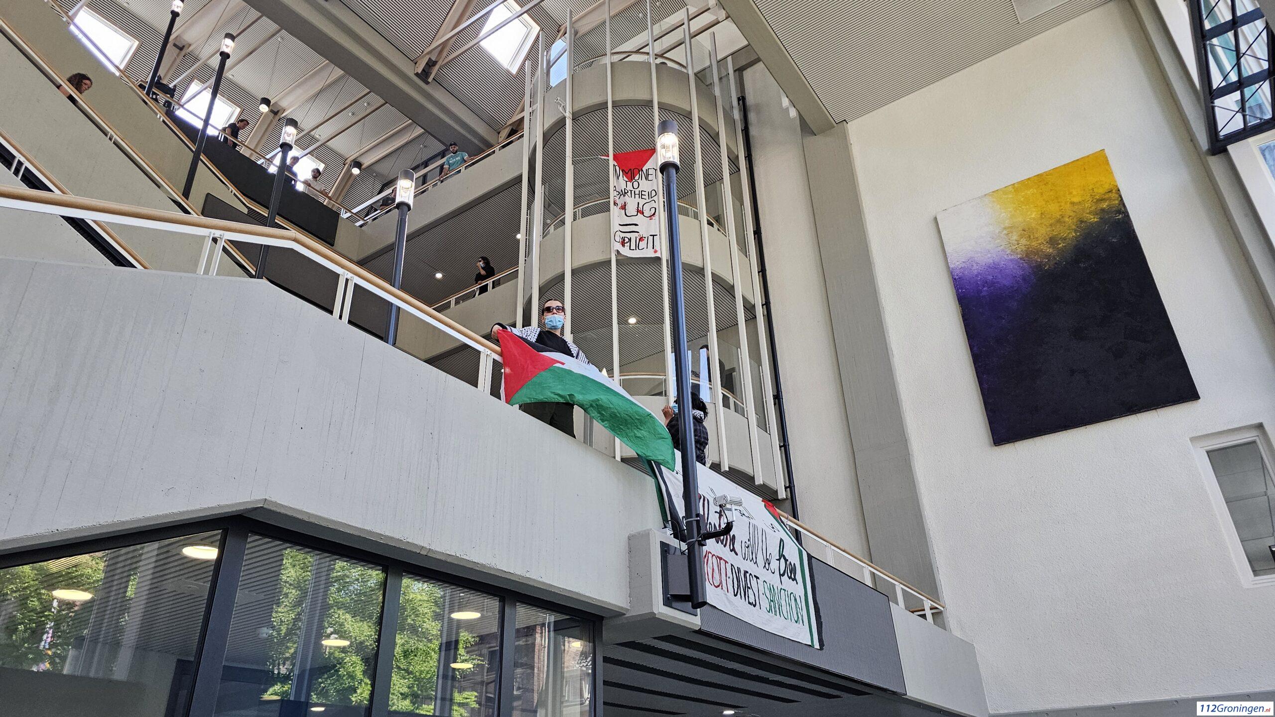 Groningen – In de Universiteitsbibliotheek aan de Broerstraat was donderdagmiddag een pro Palestina demonstratie aan de gang.