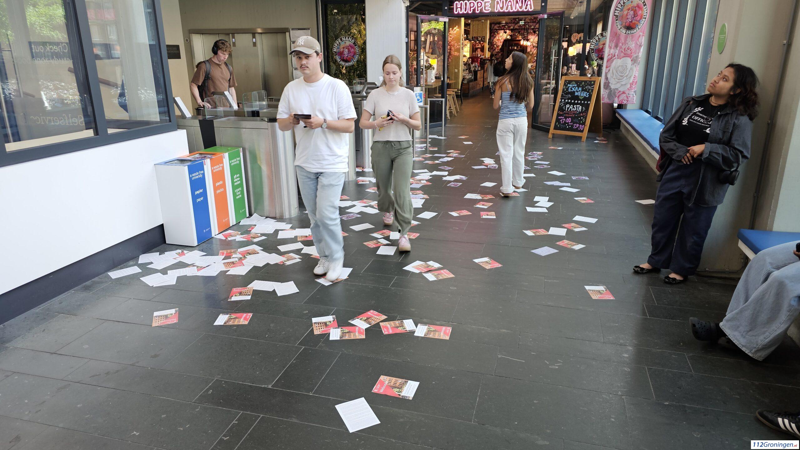 Overal lagen flyers op de grond en er hingen spandoeken in het atrium. Hoelang het duurt is onbekend.