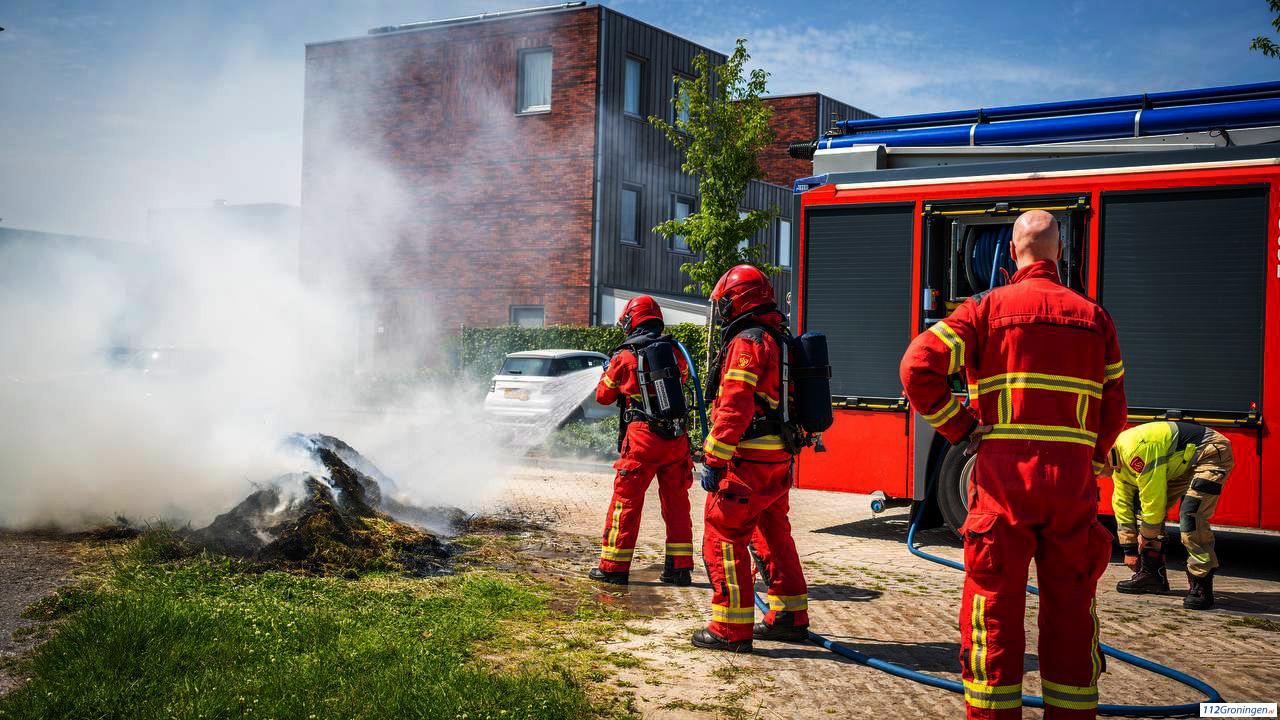 Delfzijl – Aan de Jelte Dijkstraweg in Delfzijl is vrijdagmiddag broei ontstaan in een bult met gras. Brandweer Delfzijl rukte daarop uit.