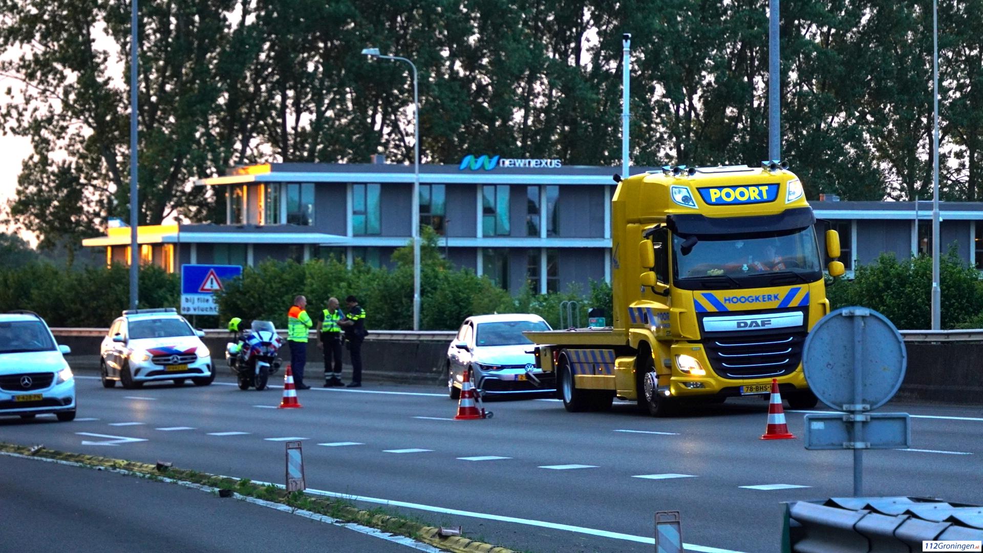 Auto tegen vangrail op A28 bij Haren – snelweg tijdelijk afgesloten