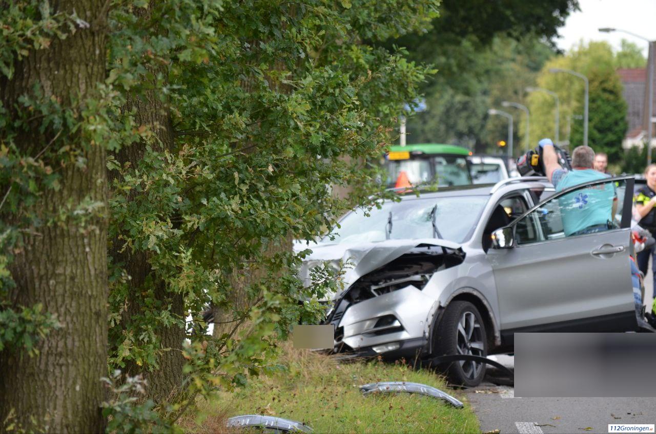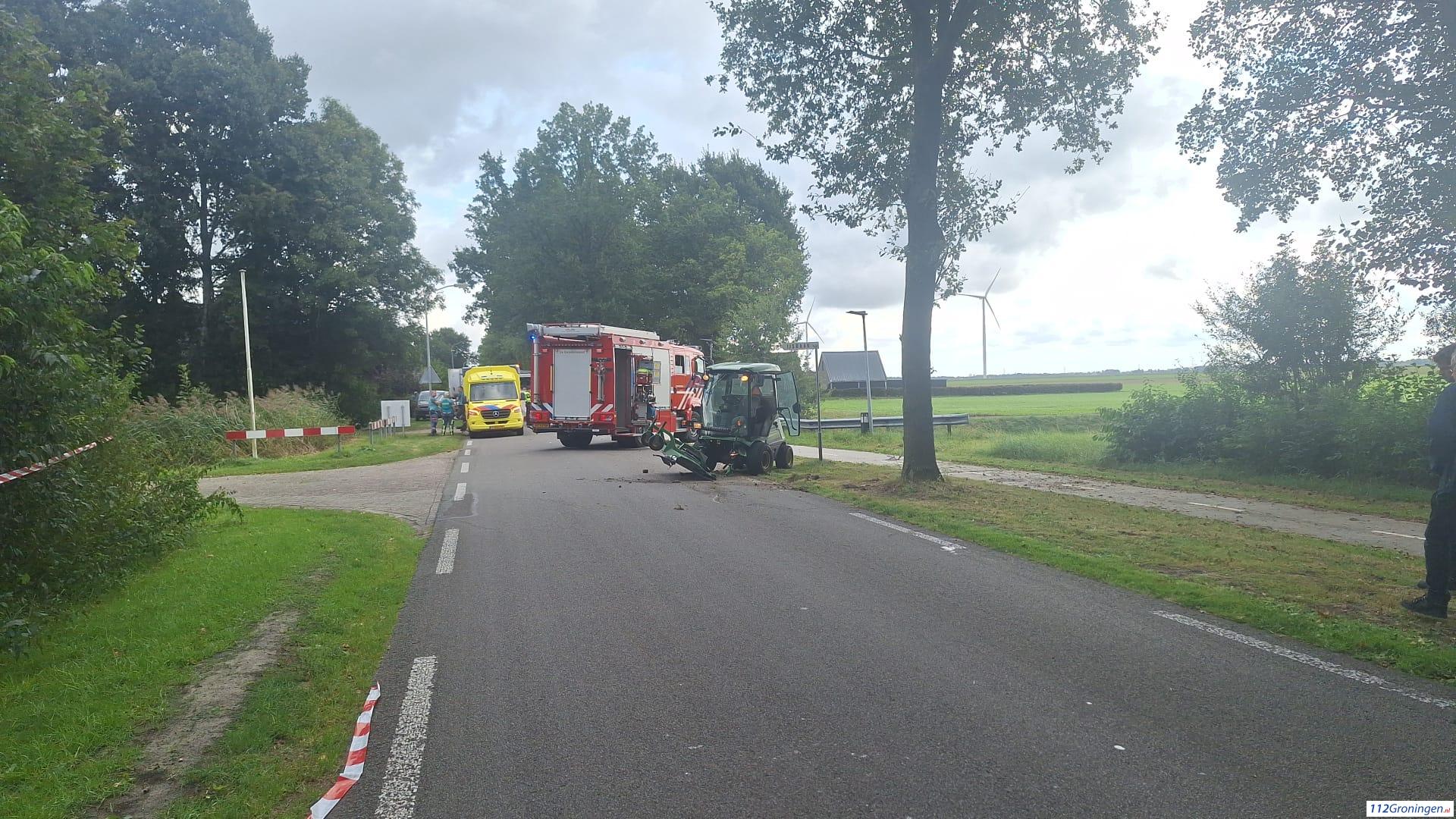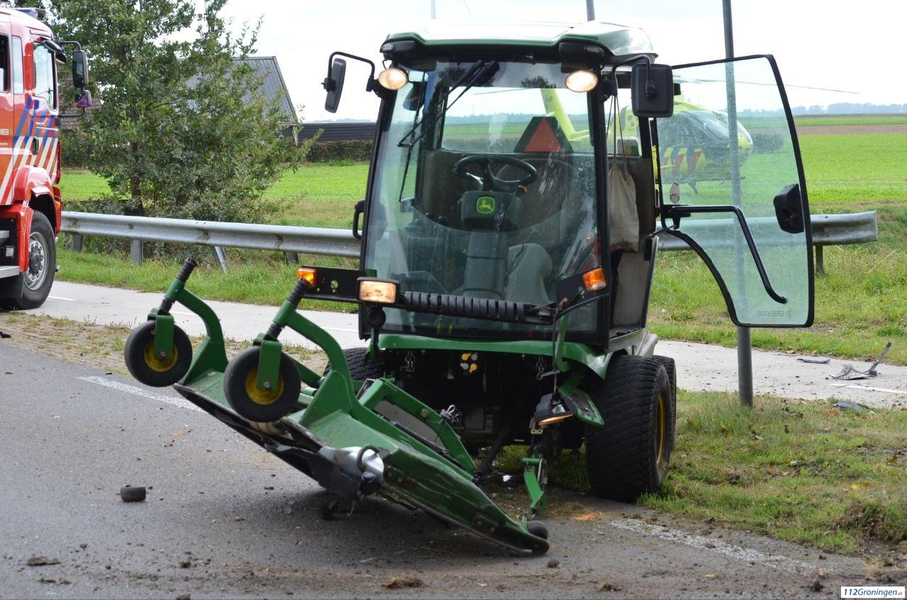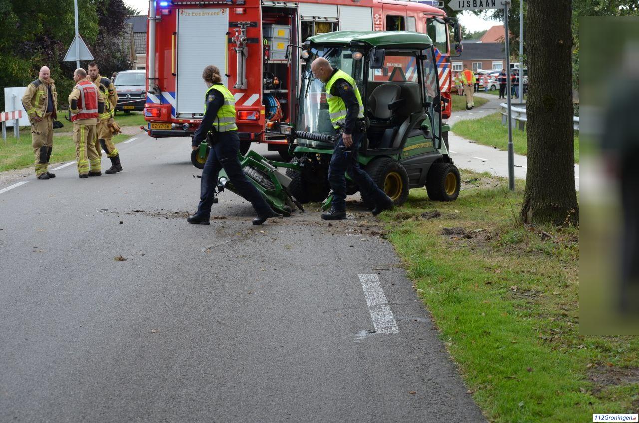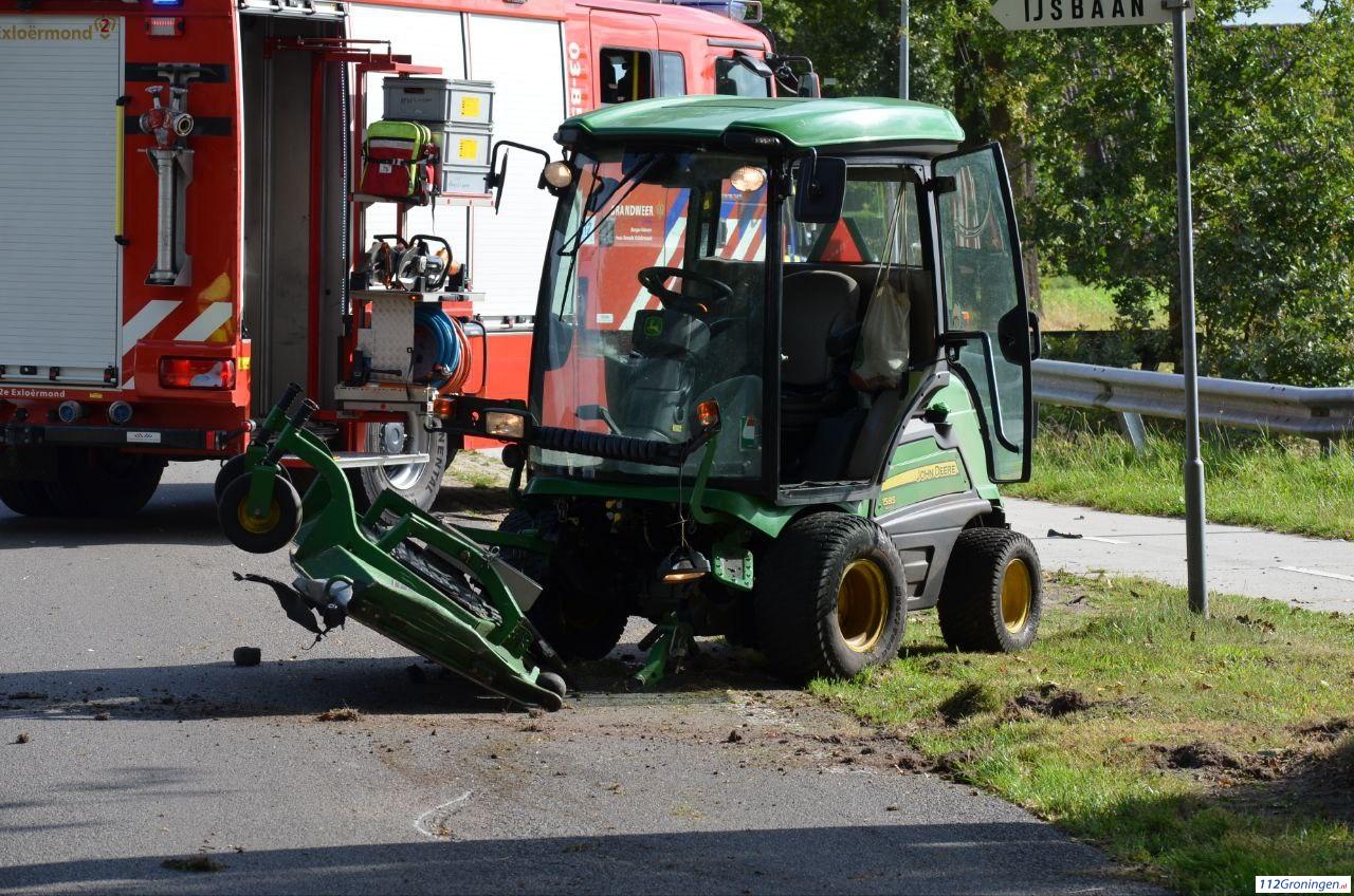 De man is na een botsing met een zitmaaier tegen een boom tot stilstand gekomen. De bestuurder van de zitmaaier raakt niet gewond.