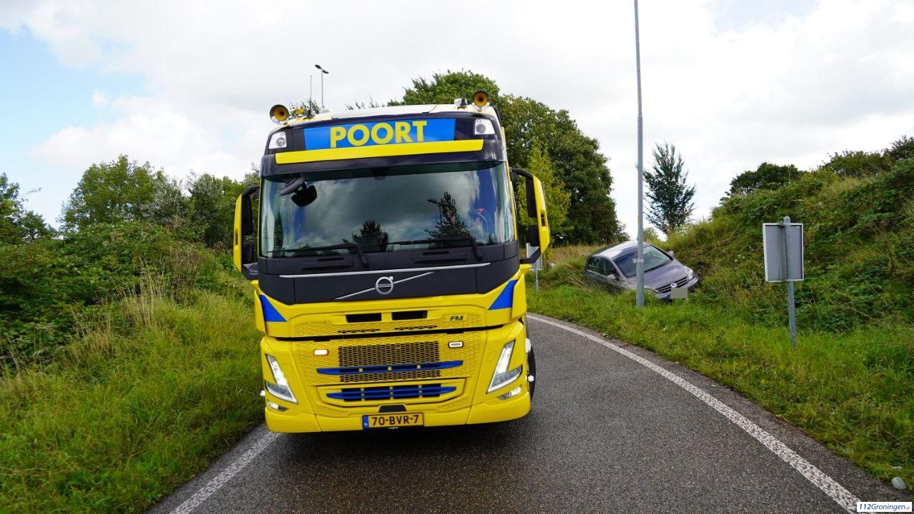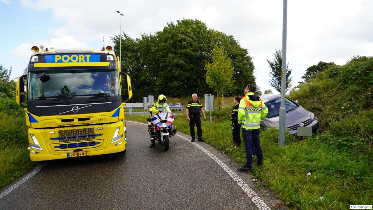 Groningen- Op de afrit N46 bij Beijum Noord is vrijdag aan het begin van de middag een auto van de weg geraakt.