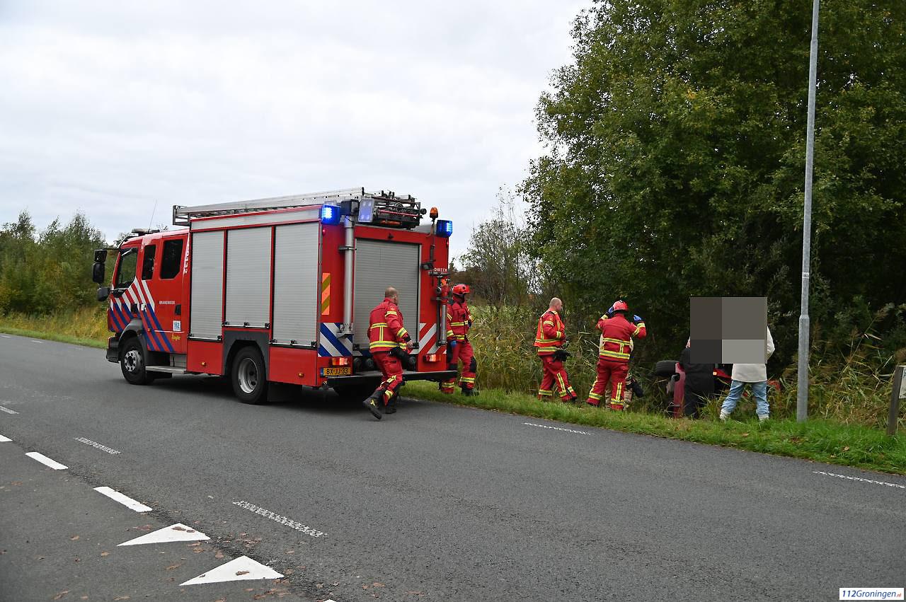 Finsterwolde – Bij de Kromme Elleboog in Finsterwolde is donderdag rond 14:00 uur een auto in een sloot terecht gekomen. De toedracht is niet bekend