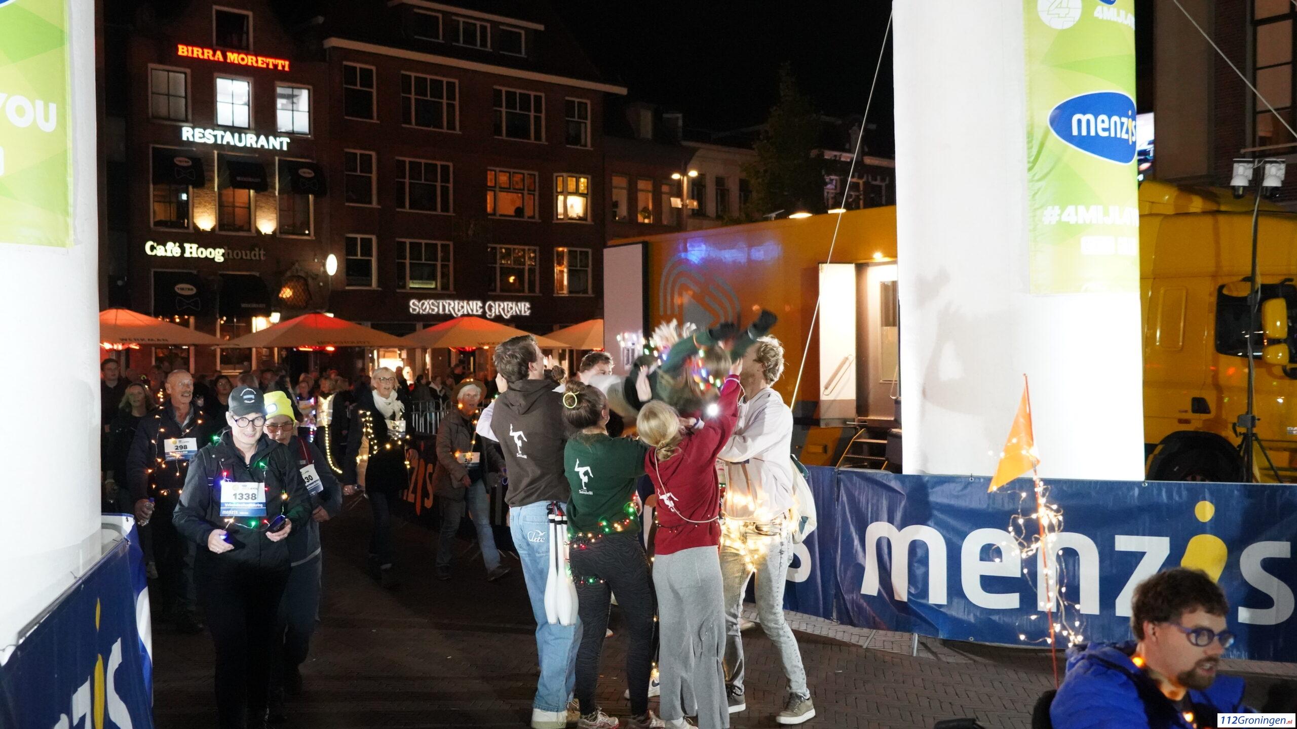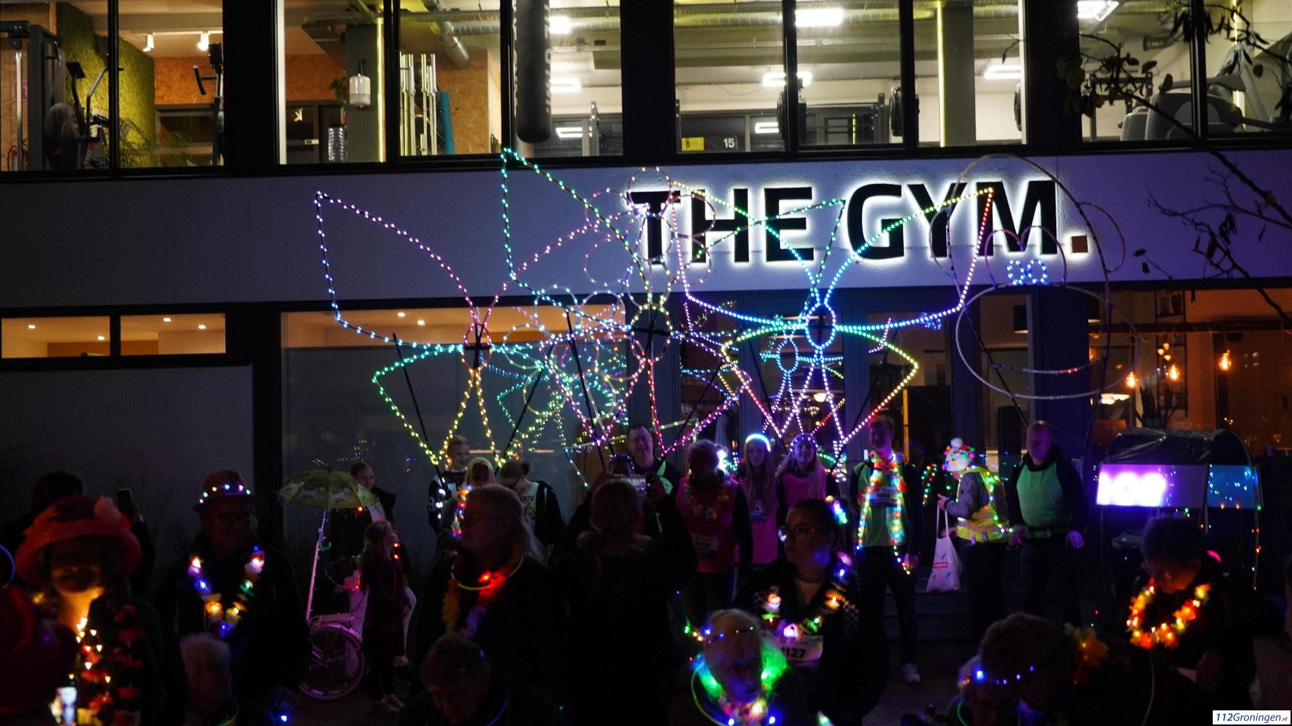Langs het parcours heerst een gezellige en sportieve sfeer. Veel lopers hebben hun outfit versierd met lichtjes, slingers en andere kleurrijke attributen, wat zorgt voor een feestelijk geheel. Op de Grote Markt draait een DJ vrolijke muziek, terwijl het publiek de lopers enthousiast aanmoedigt bij hun aankomst.